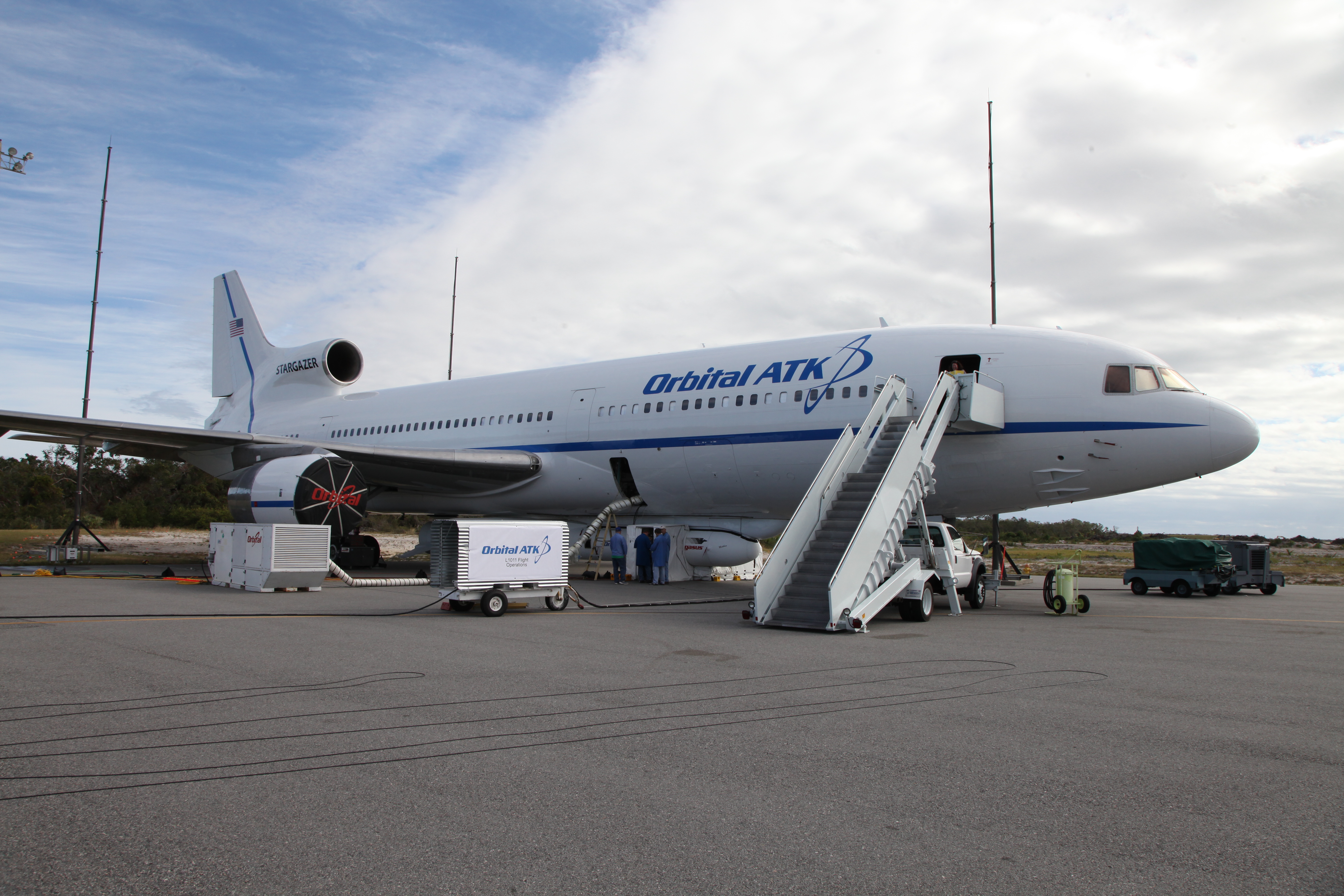 At Cape Canaveral Air Force Station's Skid Strip the Orbital ATK L-1011 Stargazer aircraft is being prepared to launch NASA's Cyclone Global Navigation Satellite System, or CYGNSS, spacecraft. The eight micro satellites are aboard an Orbital ATK Pegasus XL rocket strapped to the underside of the Stargazer. CYGNSS is scheduled for its airborne launch aboard the Pegasus XL rocket from the Skid Strip on Dec. 12. CYGNSS will make frequent and accurate measurements of ocean surface winds throughout the life cycle of tropical storms and hurricanes. The data that CYGNSS provides will enable scientists to probe key air-sea interaction processes that take place near the core of storms, which are rapidly changing and play a critical role in the beginning and intensification of hurricanes.