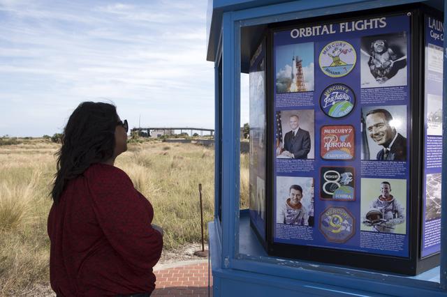 Octavia Spencer, who portrays Dorothy Vaughan in the upcoming motion picture "Hidden Figures," looks at a display near Launch Pad 14 at Cape Canaveral Air Force Station. The pad, seen in the background, was the location of the launch of John Glenn and three other astronauts who flew orbital missions during Project Mercury. The movie is based on the book of the same title, by Margot Lee Shetterly. It chronicles the lives of Katherine Johnson, Dorothy Vaughan and Mary Jackson, three African-American women who worked for NASA as human "computers.” Their mathematical calculations were crucial to the success of Project Mercury missions including Glenn’s orbital flight aboard Friendship 7 in 1962. The film is due in theaters in January 2017.