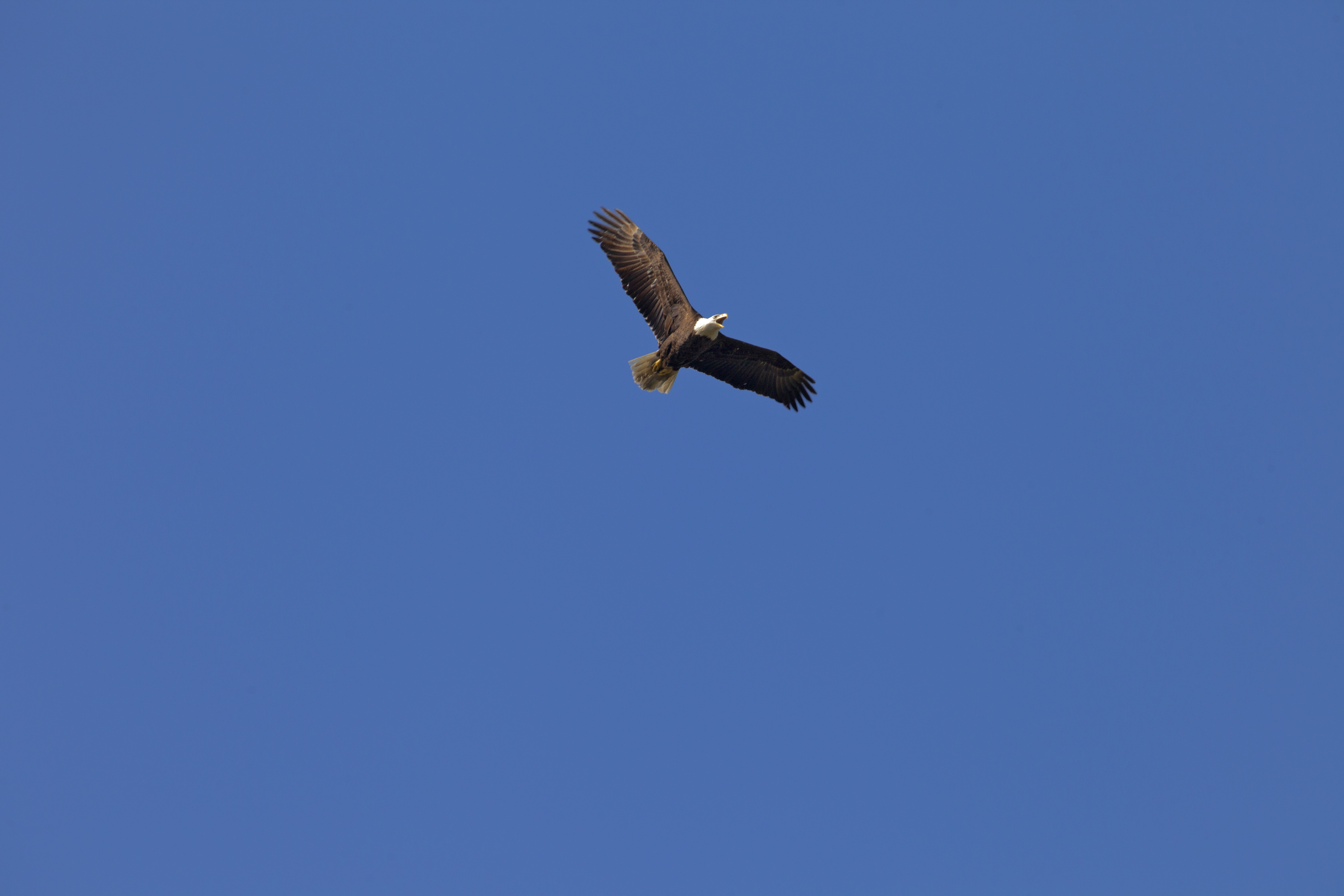 An American bald eagle soars through the air above NASA's Kennedy Space Center in Florida. The center shares a border with the Merritt Island National Wildlife Refuge. More than 330 native and migratory bird species, 25 mammals, 117 fishes and 65 amphibians and reptiles call Kennedy and the wildlife refuge home.