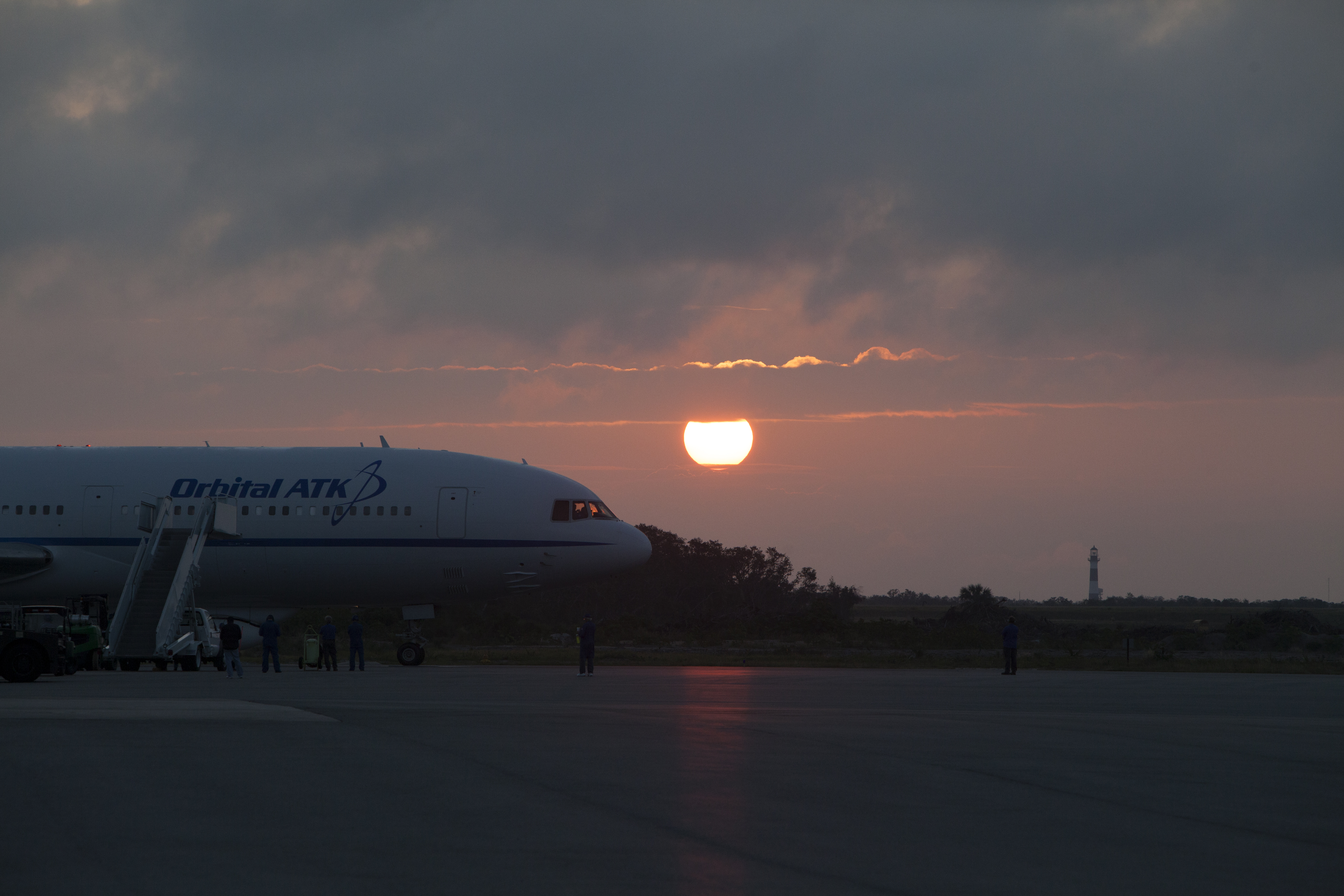 An Orbital ATK L-1011 Stargazer aircraft carrying a Pegasus XL Rocket with eight NASA Cyclone Global Navigation Satellite System, or CYGNSS, spacecraft is being readied for takeoff from the Skid Strip at Cape Canaveral Air Force Station, Florida. With the aircraft flying off shore, the Pegasus rocket will be released. Five seconds later, the solid propellant engine will ignite and boost the eight hurricane observatories to orbit. The eight CYGNSS satellites will make frequent and accurate measurements of ocean surface winds throughout the life cycle of tropical storms and hurricanes.