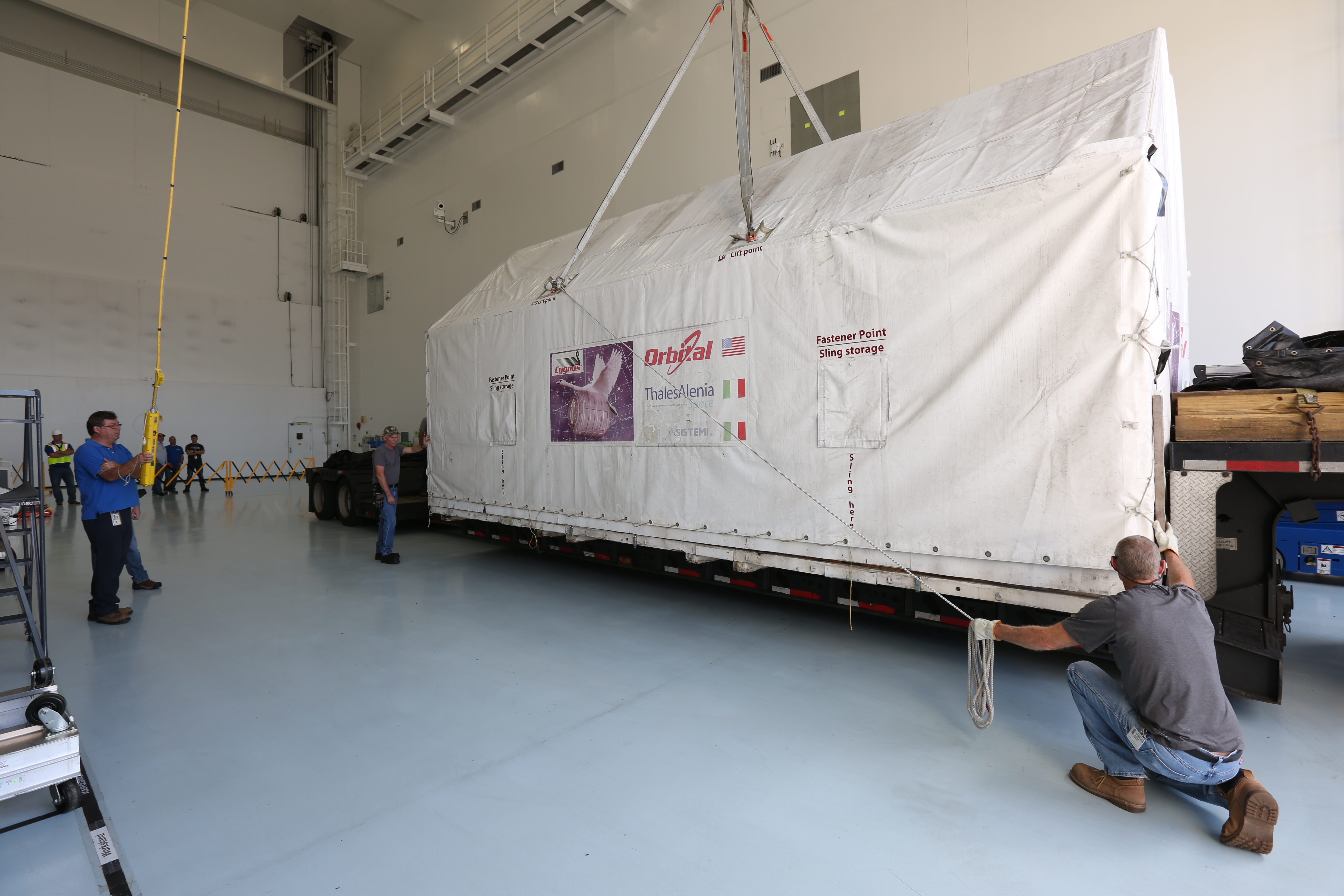 Sealed in its shipping container, the ground support equipment for the Orbital ATK OA-7 commercial resupply services mission was moved inside the low bay of the Space Station Processing Facility at NASA's Kennedy Space Center in Florida. The Orbital ATK CRS-7 with the Cygnus cargo module will lift off atop a United Launch Alliance Atlas V rocket from Space launch Complex 41 at Cape Canaveral Air Force Station. The commercial resupply services mission to the International Space Station will deliver thousands of pounds of supplies, equipment and scientific research materials that improve life on Earth and drive progress toward future space exploration.