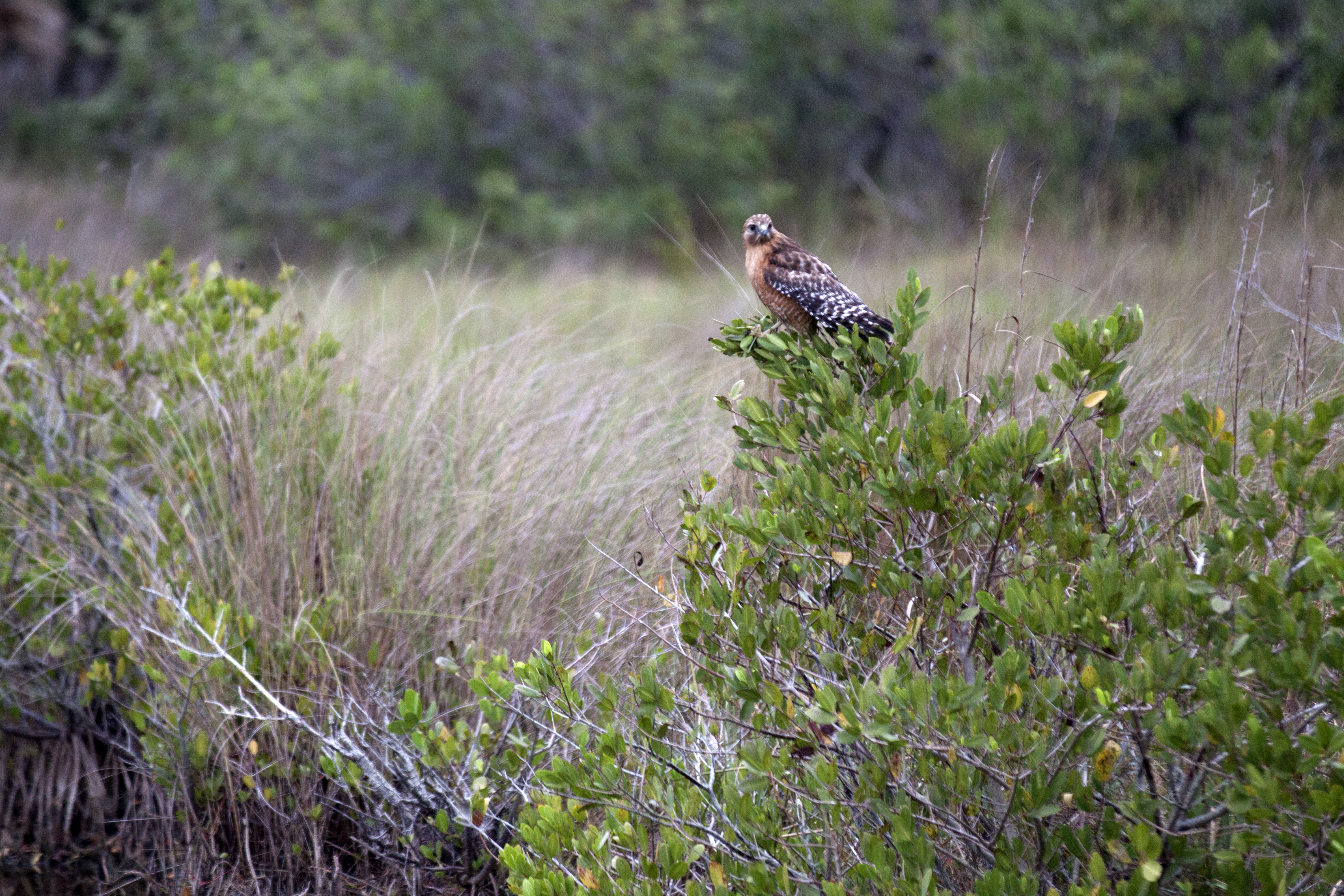 A Cooper's hawk perches on branch of a small tree at NASA's Kennedy Space Center in Florida. The center shares a border with the Merritt Island National Wildlife Refuge. More than 330 native and migratory bird species, 25 mammals, 117 fishes and 65 amphibians and reptiles call Kennedy and the wildlife refuge home.
