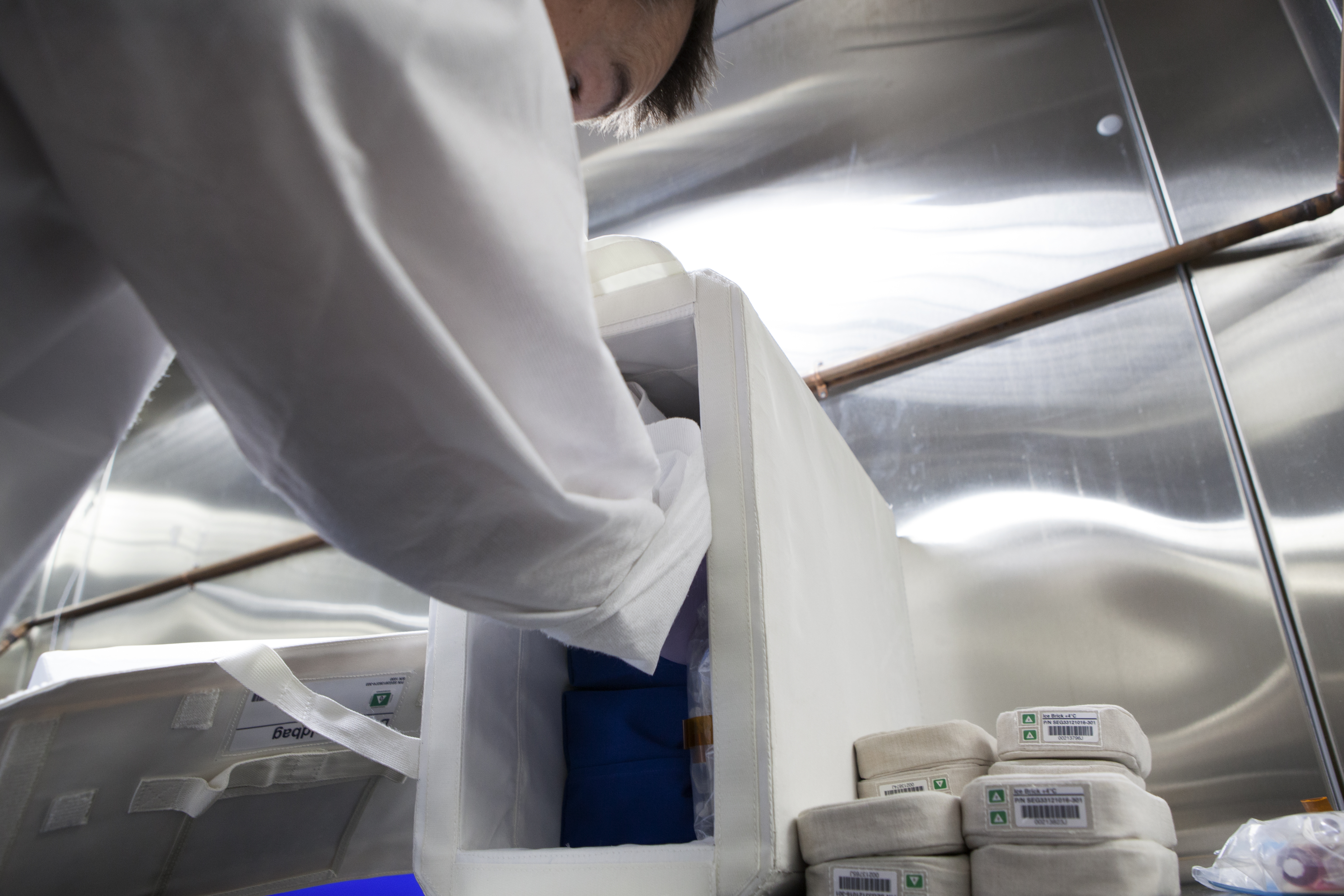 APEX-04, or Advanced Plant EXperiments-04, is being prepared in a cold room in the Kennedy Space Center Processing Facility for SpaceX-10. Eric Morris from the cold stowage group fits items into the Double Cold Bag (DCB) which is a non-powered container that keeps the APEX petri plates at +4 degrees Celsius during launch and ascent.. Dr. Anna Lisa Paul of the University of Florida is the principal investigator for APEX-04. Apex-04 is an experiment involving Arabidopsis in petri plates inside the Veggie facility aboard the International Space Station. Since Arabidopsis is the genetic model of the plant world, it is a perfect sample organism for performing genetic studies in spaceflight. The experiment is the result of a grant from NASA’s Space Life and Physical Sciences division.