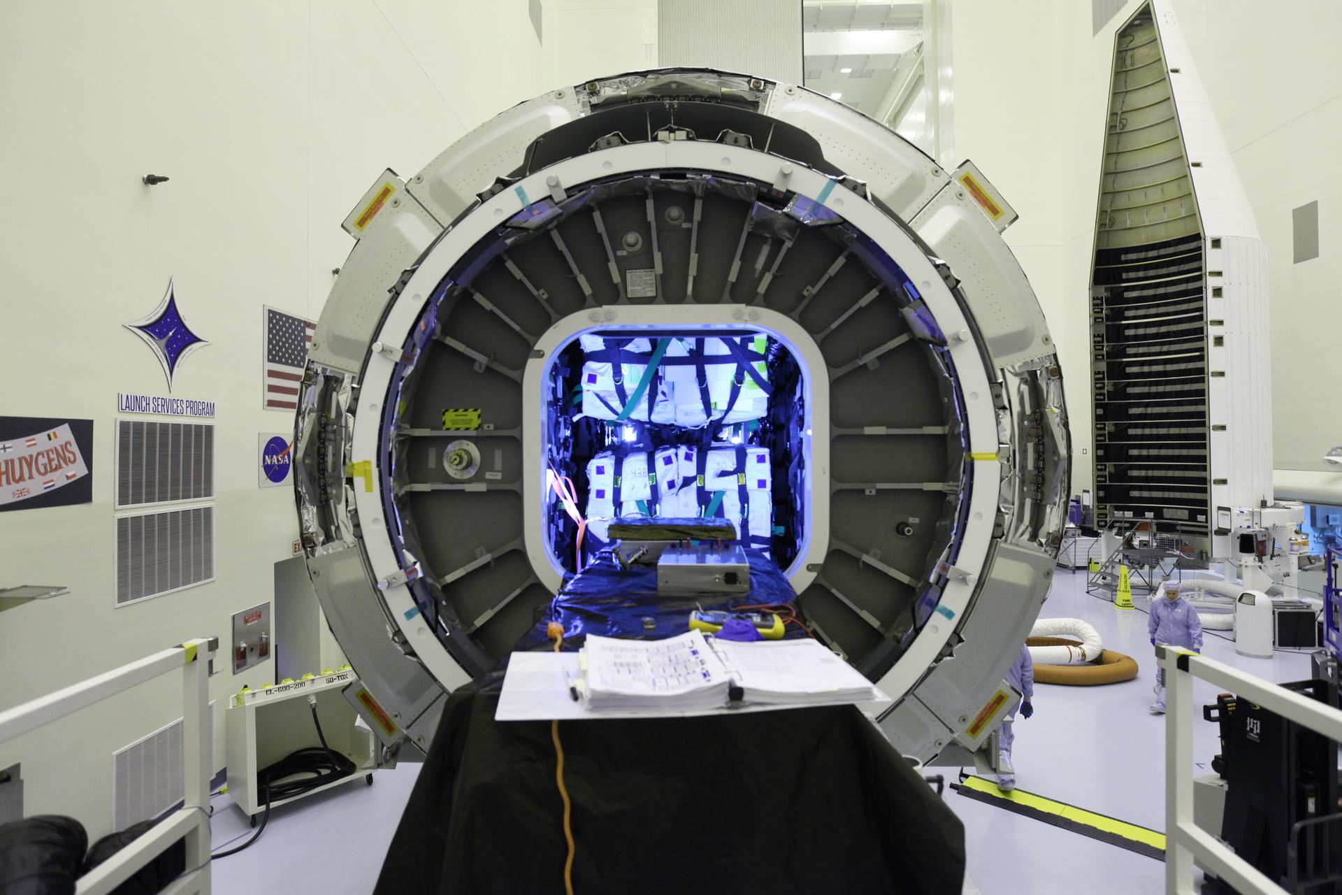 Inside the Payload Hazardous Servicing Facility at NASA's Kennedy Space Center in Florida, preparations are underway for final stowage of powered cargo in the Orbital ATK Cygnus pressurized cargo module. The Orbital ATK CRS-7 commercial resupply services mission to the International Space Station is scheduled to launch atop a United Launch Alliance Atlas V rocket from Space Launch Complex 41 at Cape Canaveral Air Force Station targeted for March 24, 2017. Cygnus will deliver 7,600 pounds of supplies, equipment and scientific research materials to the space station.