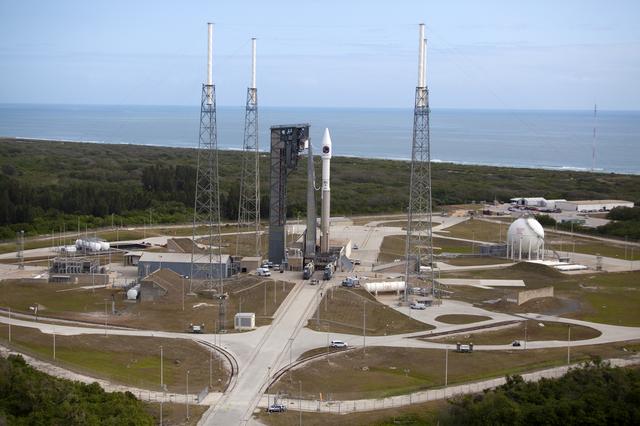 The United Launch Alliance Atlas V rocket, with the Orbital ATK Cygnus pressurized cargo module, stands ready for launch on the pad at Space Launch Complex 41 at Cape Canaveral Air Force Station in Florida. Orbital ATK's seventh commercial resupply services mission, CRS-7, is scheduled to launch to the International Space Station on April 18, 2017. Cygnus will deliver 7,600 pounds of supplies, equipment and scientific research materials to the space station. Liftoff is scheduled for 11:11 a.m. EDT.
