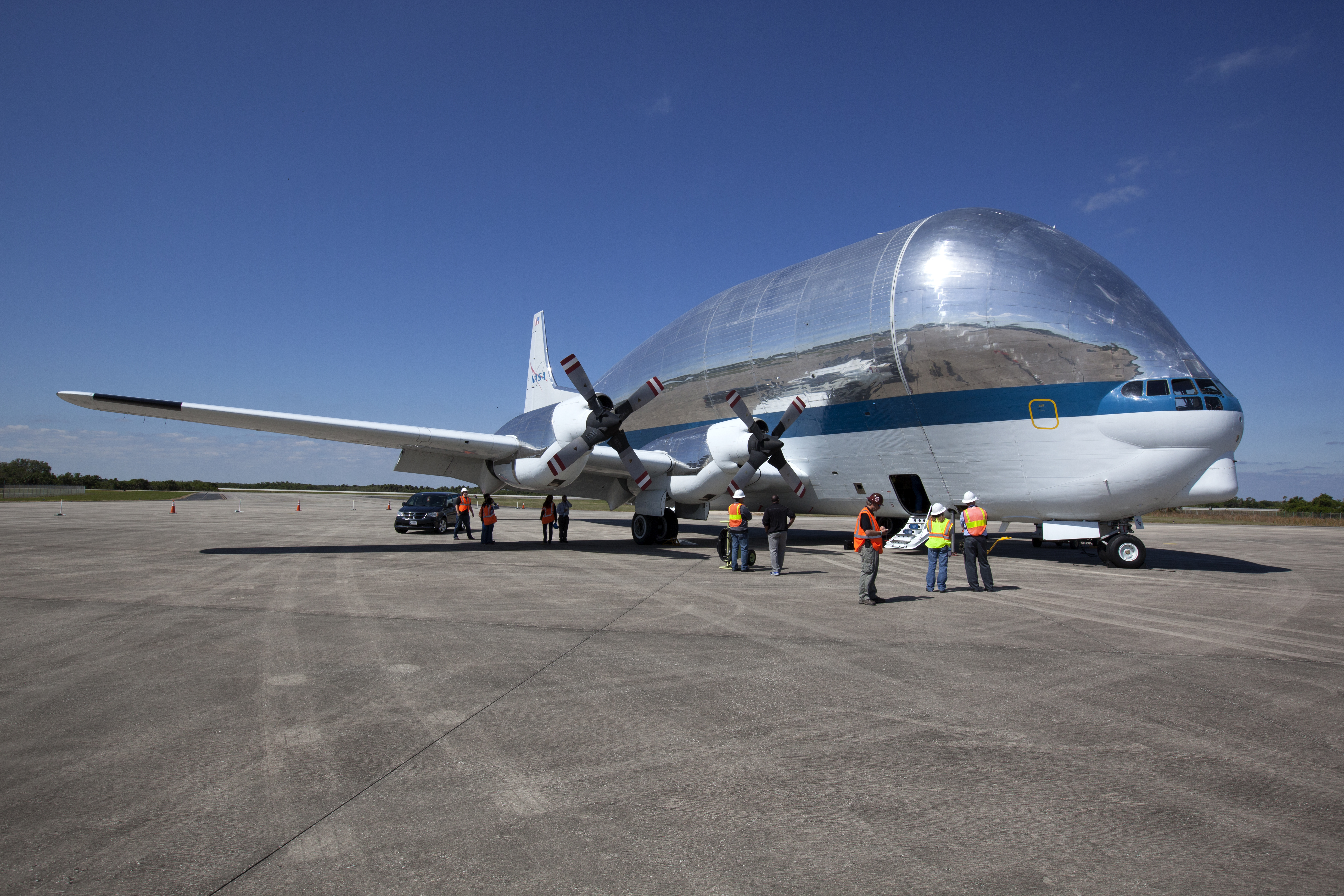 NASA's Super Guppy aircraft has been closed and secured at the Shuttle Landing Facility at NASA's Kennedy Space Center in Florida. The Orion Exploration Mission-1 (EM-1) structural test article is secured inside the Super Guppy and will be transported to Lockheed Martin's Denver facility for testing. The Orion spacecraft will launch atop NASA’s Space Launch System rocket on EM-1, its first deep space mission.