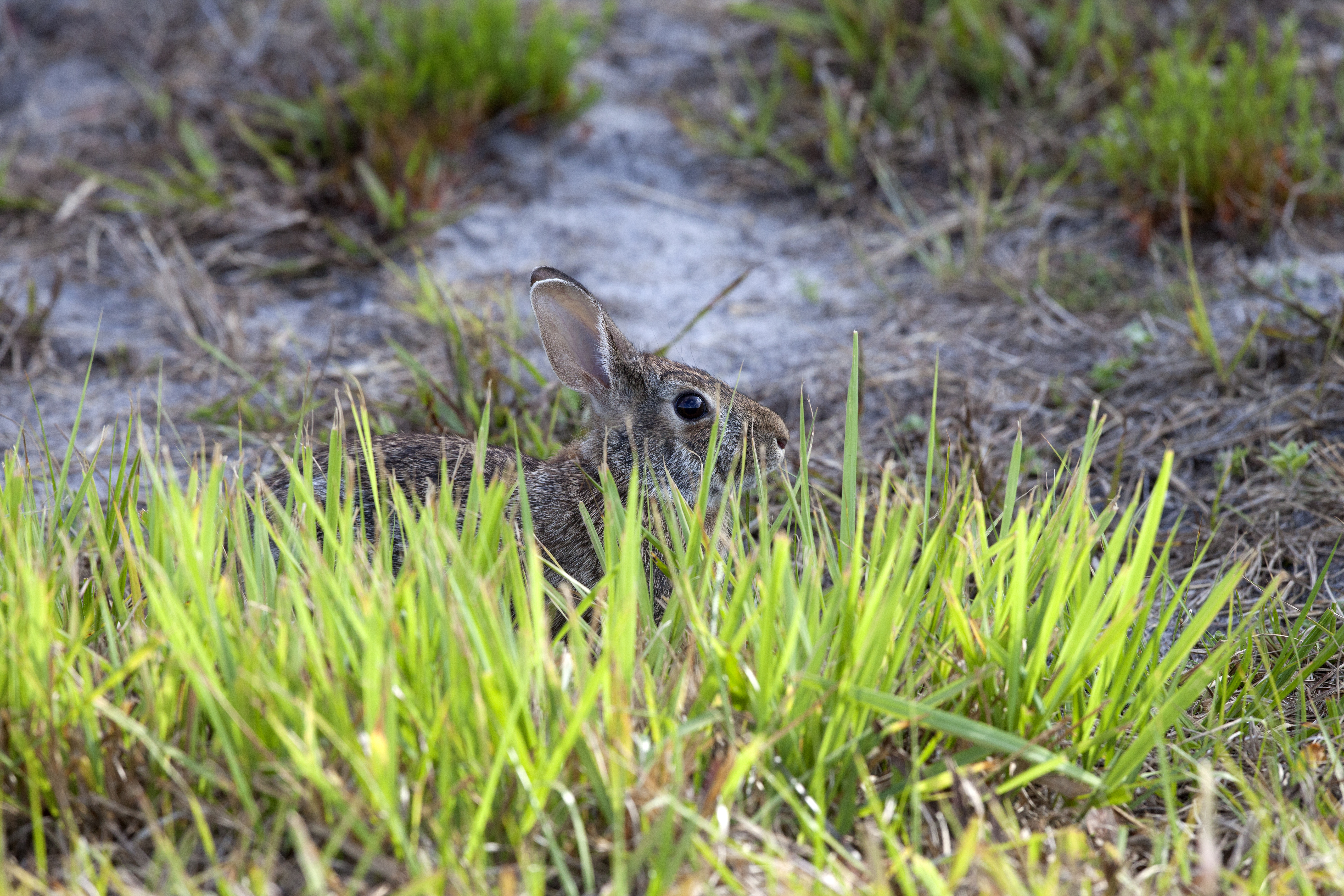 A rabbit sits in the underbrush at NASA's Kennedy Space Center in Florida. The center shares a border with the Merritt Island National Wildlife Refuge. More than 330 native and migratory bird species, 25 mammals, 117 fishes and 65 amphibians and reptiles call Kennedy and the wildlife refuge home.