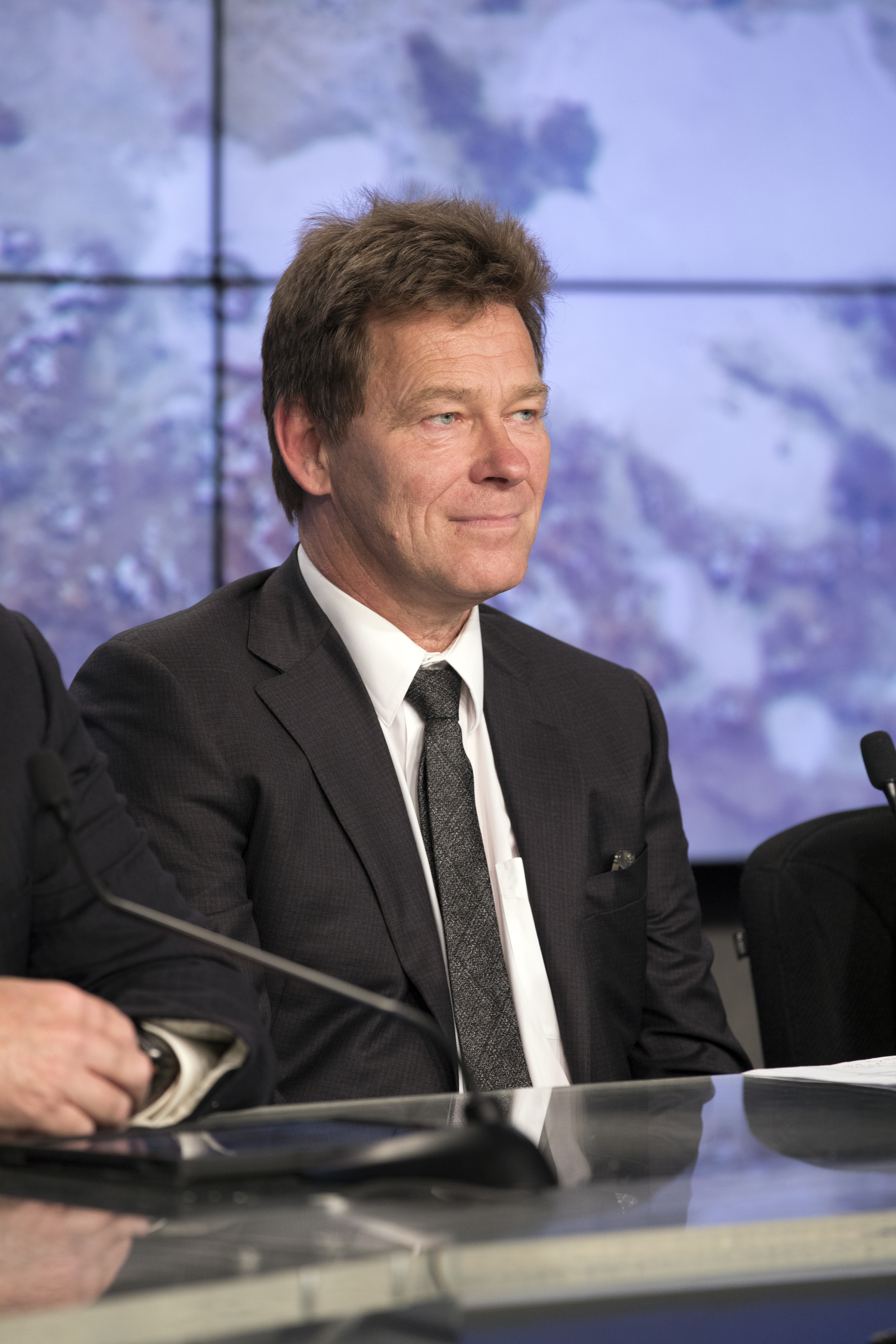 In the Kennedy Space Center’s Press Site auditorium, Hans Koenigsmann, vice president of Flight Reliability for SpaceX, speaks to members of the media during a prelaunch news conference for the SpaceX CRS-11 commercial resupply services mission to the International Space Station. A Dragon spacecraft is scheduled to be launched from Kennedy’s Launch Complex 39A on June 1 atop a SpaceX Falcon 9 rocket on the company's 11th Commercial Resupply Services mission to the space station.