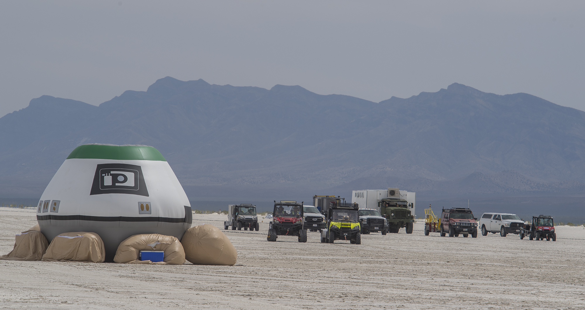 Boeing, NASA and U.S. Army teams rehearse safely bringing the CST-100 Starliner spacecraft home to Earth on Wed., June 6, 2018, at the U.S. Army's White Sands Missile Range in New Mexico. During the detailed landing simulation, engineers, technicians and spaceflight specialists worked through tight timelines and intense heat running through simulations of the spacecraft's landing and recovery, an operation that will cap each Starliner mission. For flight controllers at Mission Control in Houston, the simulation offered the chance to evaluate their own processes and rehearse everything from undocking the Starliner from the space station to communicating with the recovery teams in the field.
