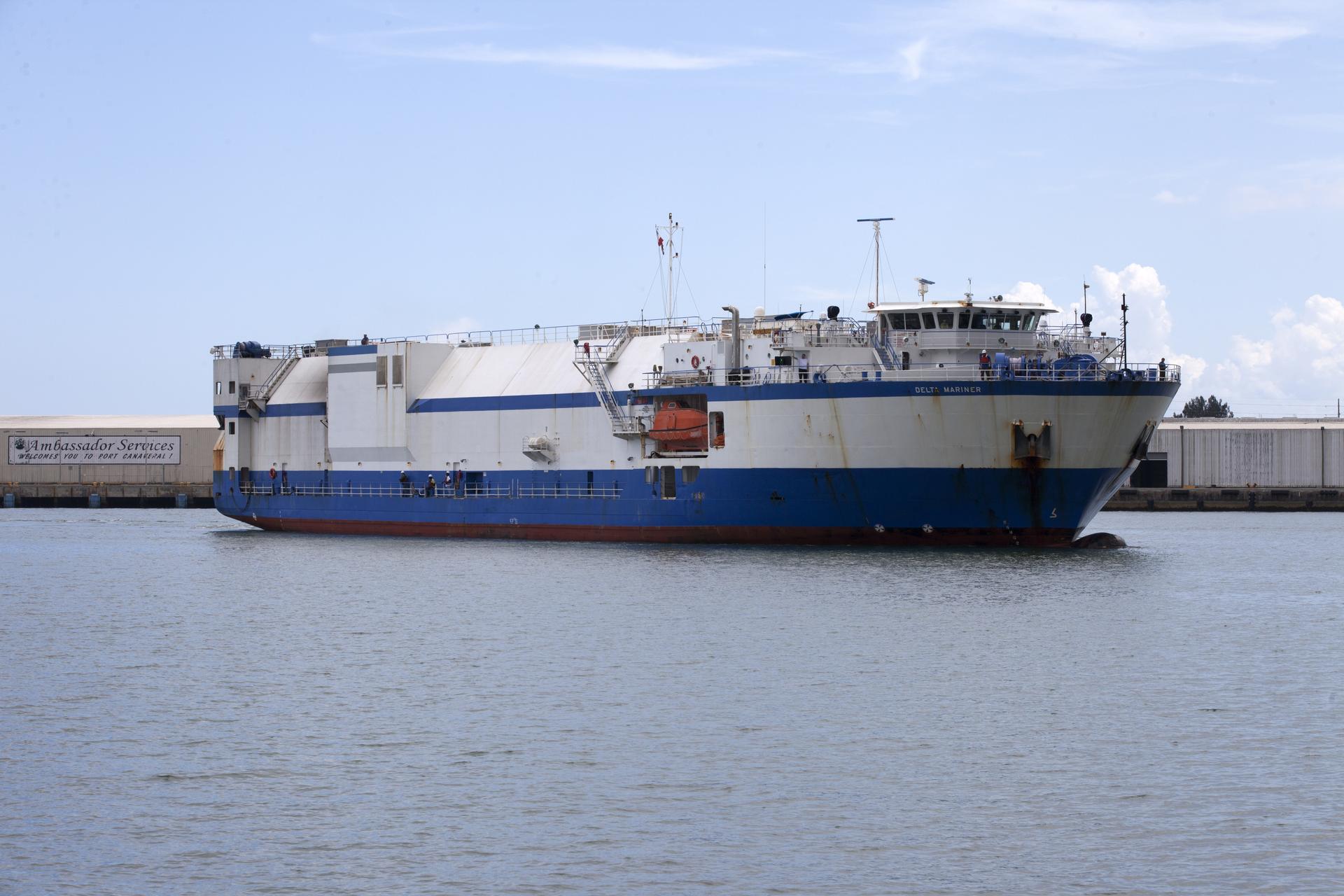 The United Launch Alliance (ULA) Mariner arrives at Port Canaveral in Florida carrying an Atlas V rocket booster bound for nearby Cape Canaveral Air Force Station. The rocket is scheduled to launch the Tracking and Data Relay Satellite, TDRS-M. It will be the latest spacecraft destined for the agency's constellation of communications satellites that allows nearly continuous contact with orbiting spacecraft ranging from the International Space Station and Hubble Space Telescope to the array of scientific observatories. Liftoff atop the ULA Atlas V rocket is scheduled to take place from Cape Canaveral's Space Launch Complex 41 on Aug. 3, 2017 at 9:02 a.m. EDT.