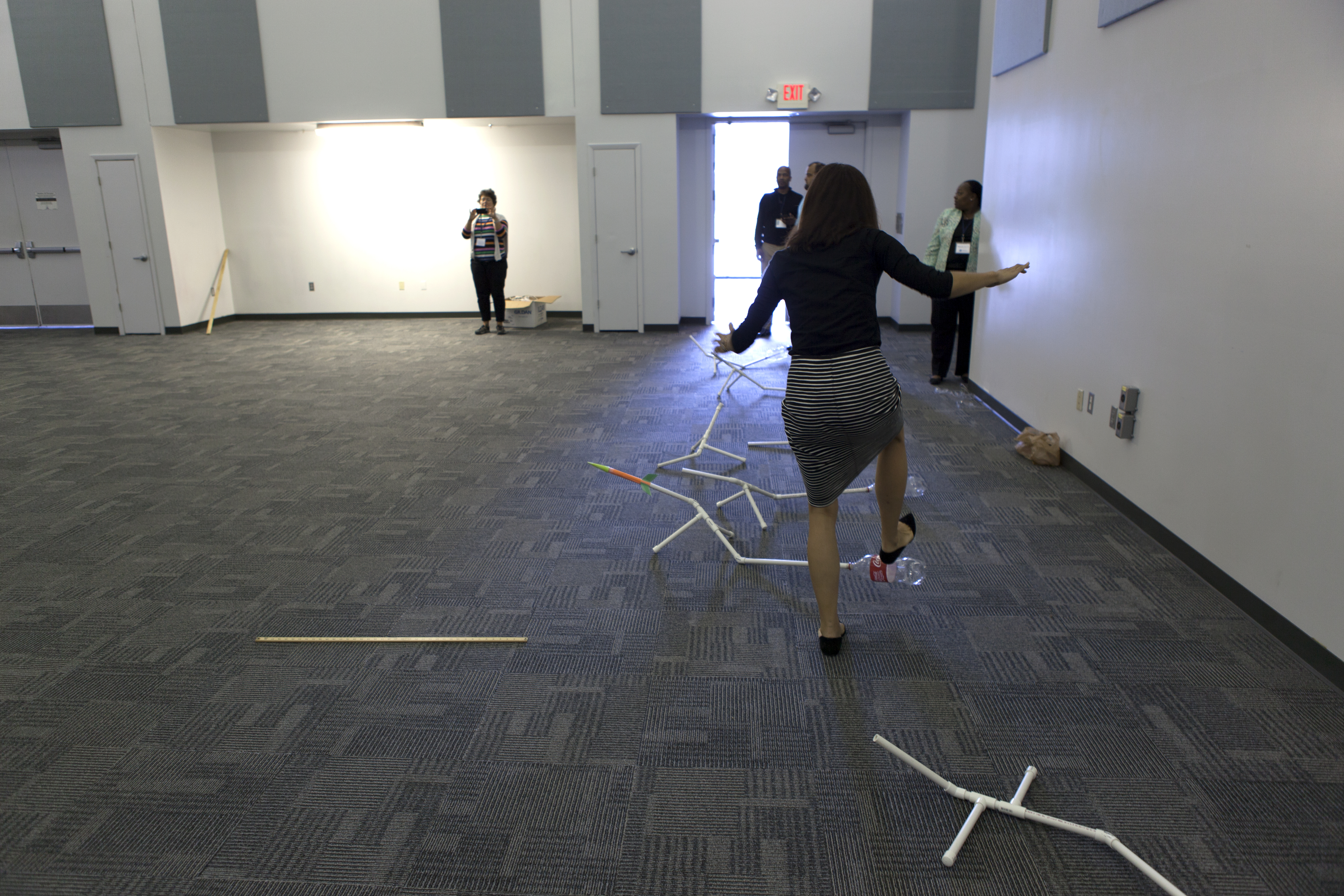 Teachers prepare to demonstrate the projects they built for the Rocketry Engineering Design Challenge during the 2017 GE Foundation High School STEM Integration Conference at the Center for Space Education at NASA's Kennedy Space Center. High school teachers from across the country took part in the week-long conference, which is designed to explore effective ways for teachers, schools and districts from across the country to integrate STEM throughout the curriculum. The conference is a partnership between GE Foundation and the National Science Teachers Association.