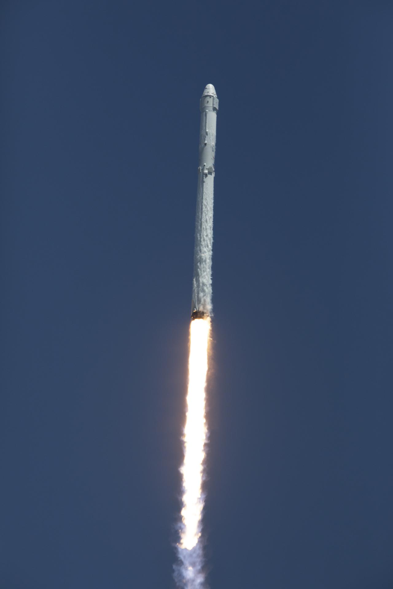 The two-stage Falcon 9 launch vehicle lifts off Launch Complex 39A at NASA's Kenney Space Center carrying the Dragon resupply spacecraft to the International Space Station. Liftoff was at 12:31 p.m. EDT. On its 12th commercial resupply services mission to the International Space Station, Dragon will bring up more than 6,400 pounds of supplies and new science experiments and equipment for technology research.