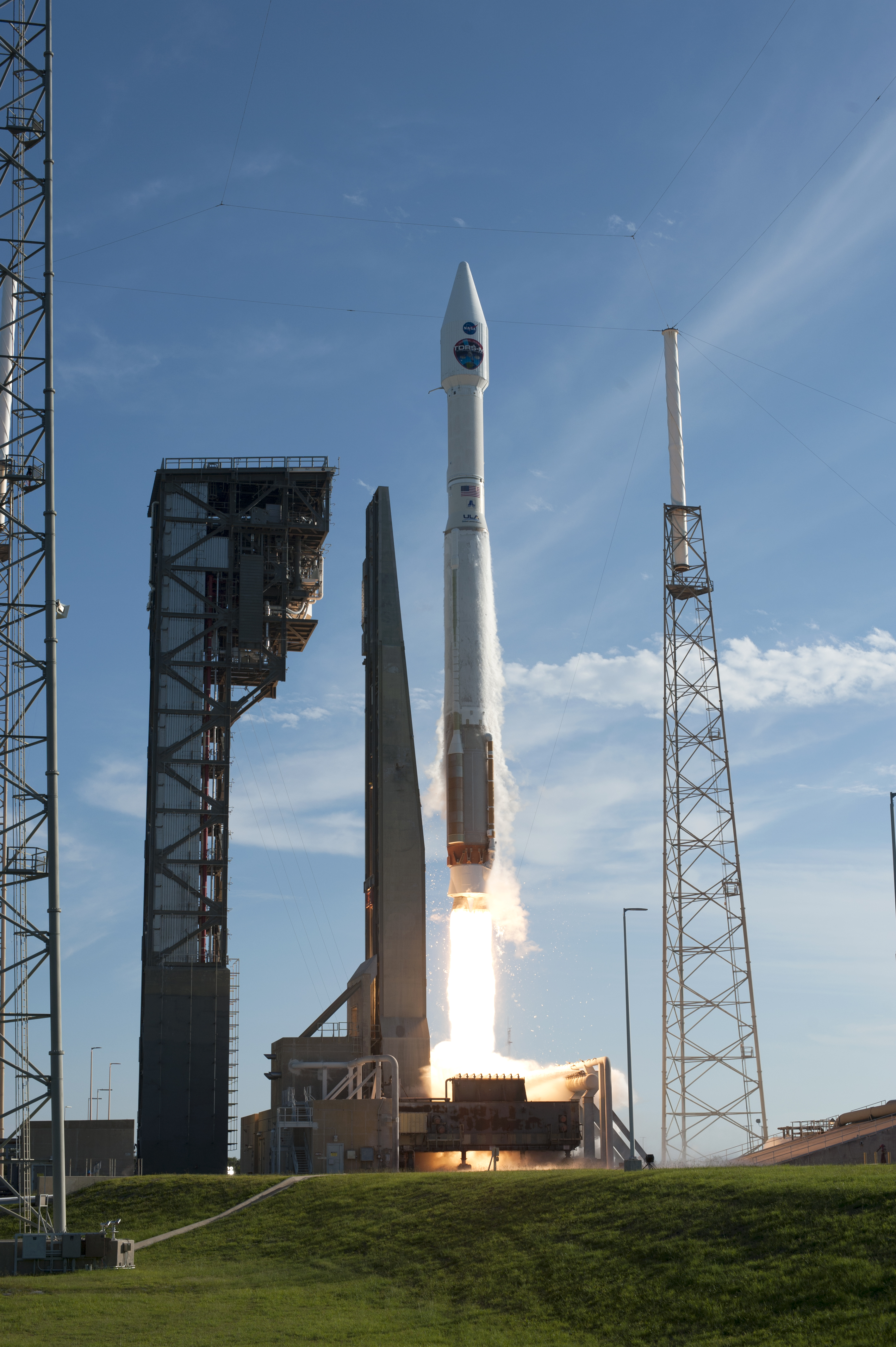 A United Launch Alliance Atlas V rocket lifts off from Space Launch Complex 41 at Cape Canaveral Air Force Station in Florida, with NASA's Tracking and Data Relay Satellite, TDRS-M. TDRS-M. Liftoff was at 8:29 a.m. EDT. TDRS-M is the latest spacecraft destined for the agency's constellation of communications satellites that allows nearly continuous contact with orbiting spacecraft ranging from the International Space Station and Hubble Space Telescope to the array of scientific observatories.