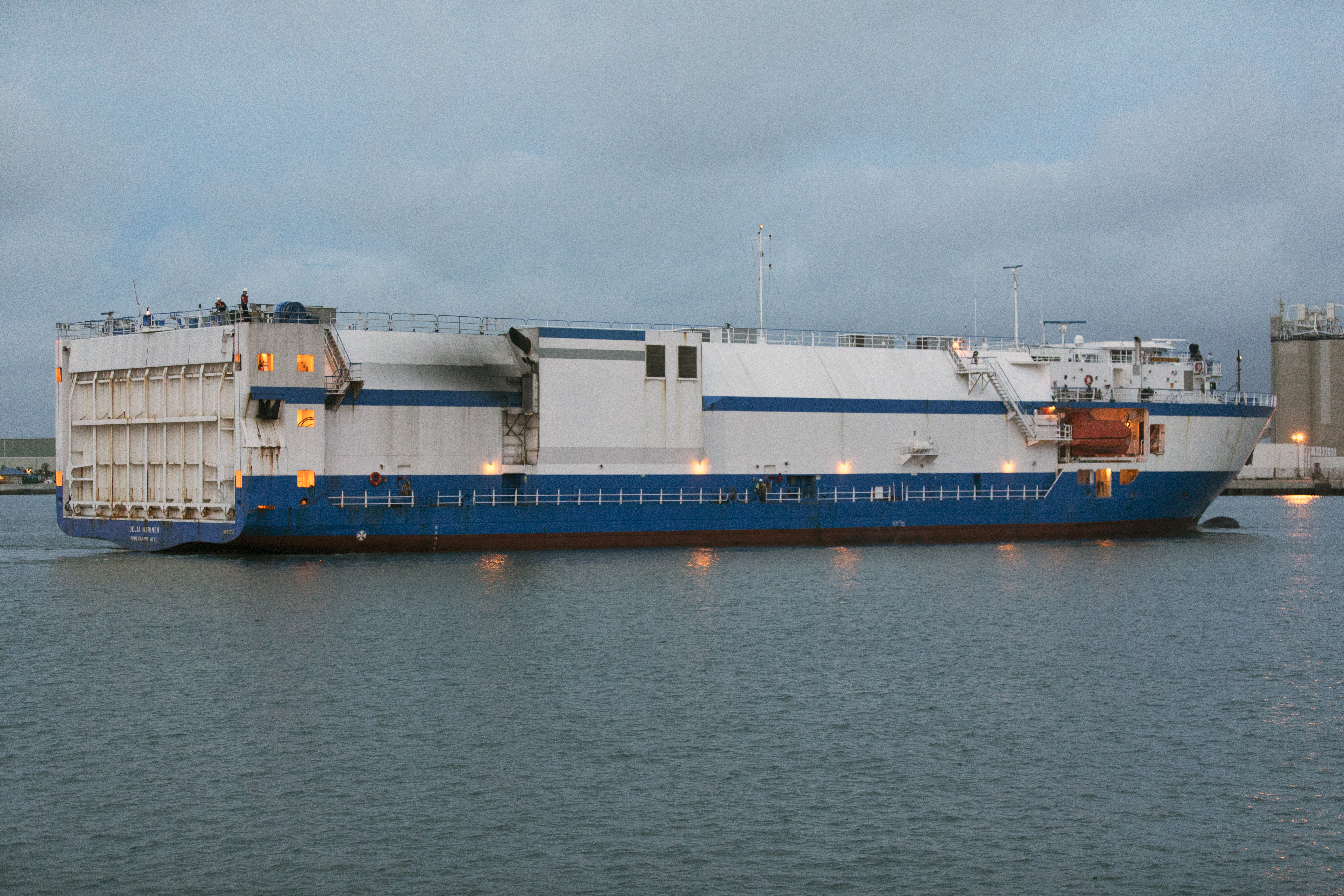 The United Launch Alliance Mariner arrives at Port Canaveral's Army Warf carrying the third Delta IV Heavy common booster core and second stage for NASA's upcoming Parker Solar Probe spacecraft. The mission will perform the closest-ever observations of a star when it travels through the Sun's atmosphere, called the corona. The probe will rely on measurements and imaging to revolutionize our understanding of the corona and the Sun-Earth connection. Liftoff atop the Delta IV Heavy rocket is scheduled to take place from Cape Canaveral's Space Launch Complex 37 in summer 2018.