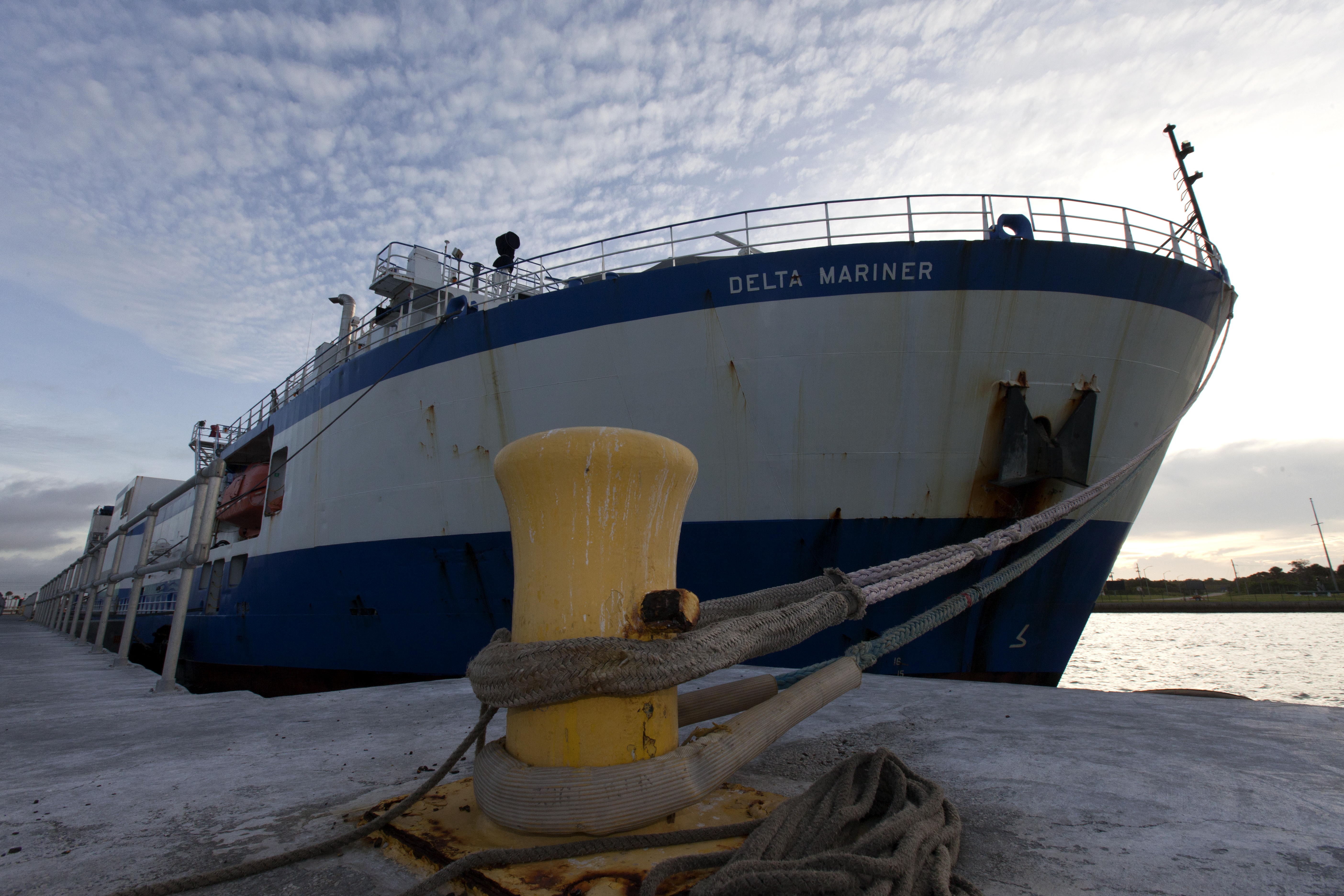 The United Launch Alliance Mariner arrives at Port Canaveral's Army Warf carrying the third Delta IV Heavy common booster core and second stage for NASA's upcoming Parker Solar Probe spacecraft. The mission will perform the closest-ever observations of a star when it travels through the Sun's atmosphere, called the corona. The probe will rely on measurements and imaging to revolutionize our understanding of the corona and the Sun-Earth connection. Liftoff atop the Delta IV Heavy rocket is scheduled to take place from Cape Canaveral's Space Launch Complex 37 in summer 2018.