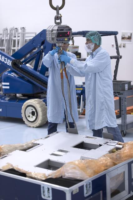 The Materials International Space Station Experiment-Flight Facility, or MISSE-FF, hardware arrived at the Space Station Processing Facility low bay at NASA's Kennedy Space Center in Florida. Technicians work to attach a crane to MISSE for lifting out of its shipping container. MISSE will be used to test various materials and computing elements on the exterior of the space station. They will be exposed to the harsh environment of low-Earth orbit, including to a vacuum, atomic oxygen, ultraviolet radiation, direct sunlight and extreme heat and cold. The experiment will provide a better understanding of material durability, from coatings to electronic sensors, which could be applied to future spacecraft designs. MISSE will be delivered to the space station on a future commercial resupply mission.
