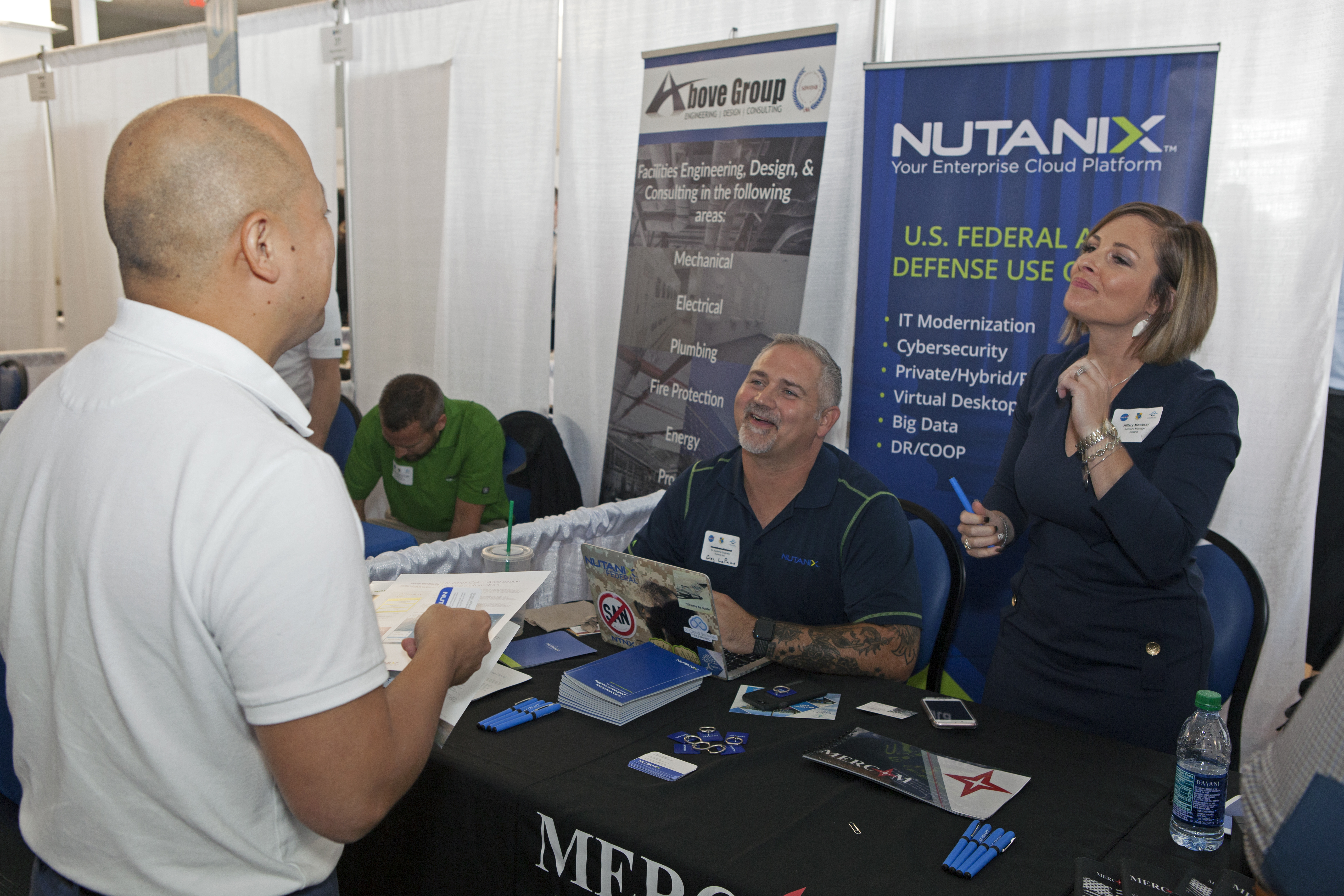 An exhibitor answers questions at Kennedy Space Center's 27th Business Opportunities Expo held at Cruise Terminal 5 at Port Canaveral in Florida. The event featured more than 180 businesses, large and small, and government exhibitors from throughout the Space Coast and the nation. The Business Opportunities Expo is sponsored by the NASA KSC Prime Contractor Board, KSC Industry Assistance Office, 45th Space Wing and Canaveral Port Authority. Exhibitors included vendors from a variety of product and service areas, such as computer technology, engineering services, communication equipment and services, and construction and safety products, to name a few. Representatives from the 45th Space Wing, KSC prime contractors, NASA and many more agencies and organizations were on hand to provide information and answer questions.