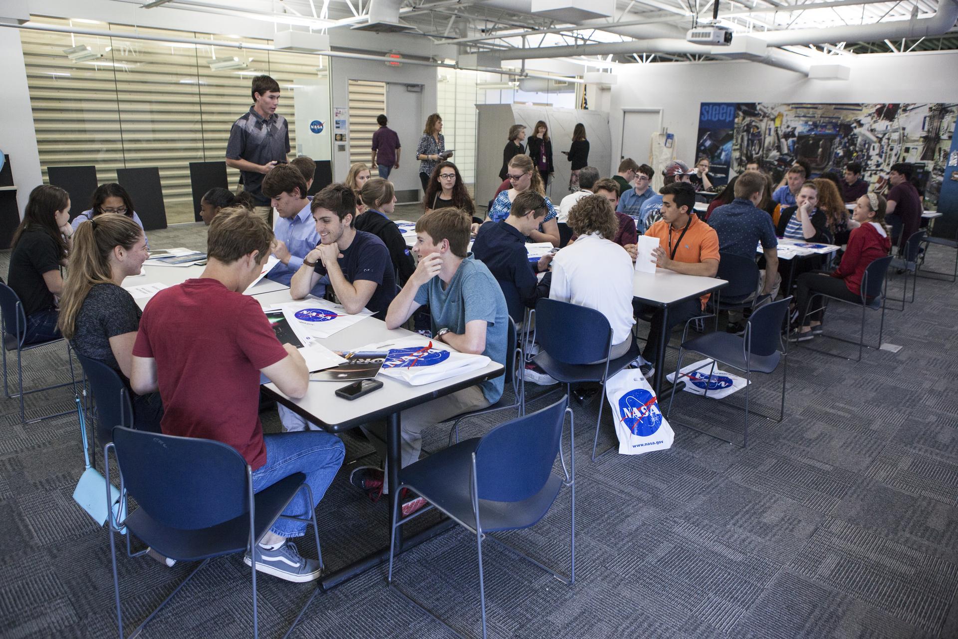Top scholars from Brevard County public high schools participate in roundtable discussions with NASA engineers and scientists at the Public Engagement Center at Kennedy Space Center Visitor Complex in Florida. Top scholars from the high schools were invited to Kennedy Space Center for a tour of facilities, lunch and a roundtable discussion. The 2017-2018 Brevard Top Scholars event was hosted by the center's Education Projects and Youth Engagement office to honor the top three scholars of the graduating student class from each of Brevard County’s public high schools. The students received a personalized certificate at the end of the day.