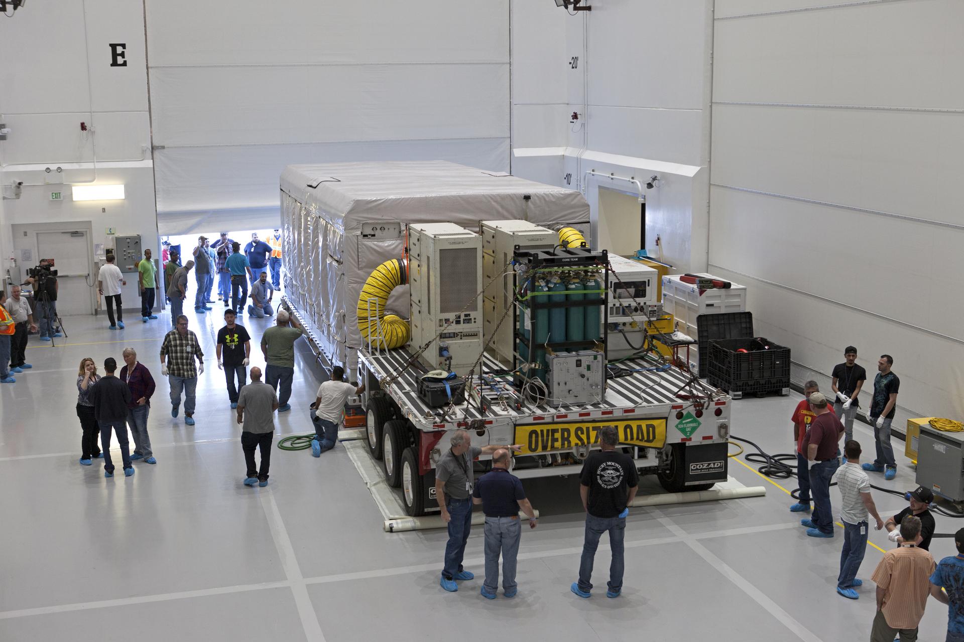 NOAA's Geostationary Operation Environmental Satellite-S (GOES-S) arrives inside Astrotech Space Operations in Titusville, Florida, to prepare it for launch. The facility is located near NASA's Kennedy Space Center. GOES-S is the second in a series of four advanced geostationary weather satellites. The GOES-R series - consisting of the GOES-R, GOES-S, GOES-T and GOES-U spacecraft - will significantly improve the detection and observation of environmental phenomena that directly affect public safety, protection of property and the nation's economic health and prosperity. GOES-S is slated to launch March 1, 2018 aboard a United Launch Alliance Atlas V rocket from Cape Canaveral Air Force Station in Florida.