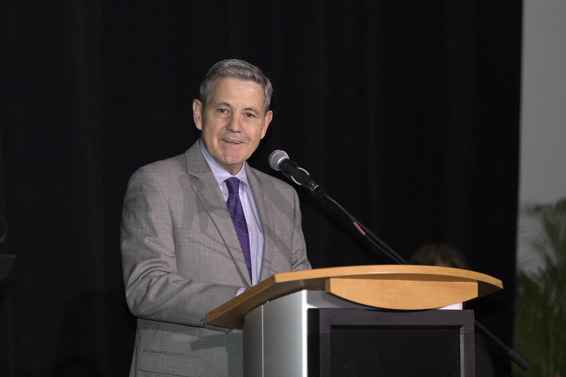 Kennedy Space Center Director Bob Cabana speaks during an Astronauts Memorial Foundation tribute honoring U.S. Air Foce Maj. Robert Lawrence. Selected in 1967 for the Manned Orbiting Laboratory Program, Lawrence was the first African-American astronaut. He lost his life in a training accident 50 years ago. The ceremony took place in the Center for Space Education at the Kennedy Space Center Visitor Complex.