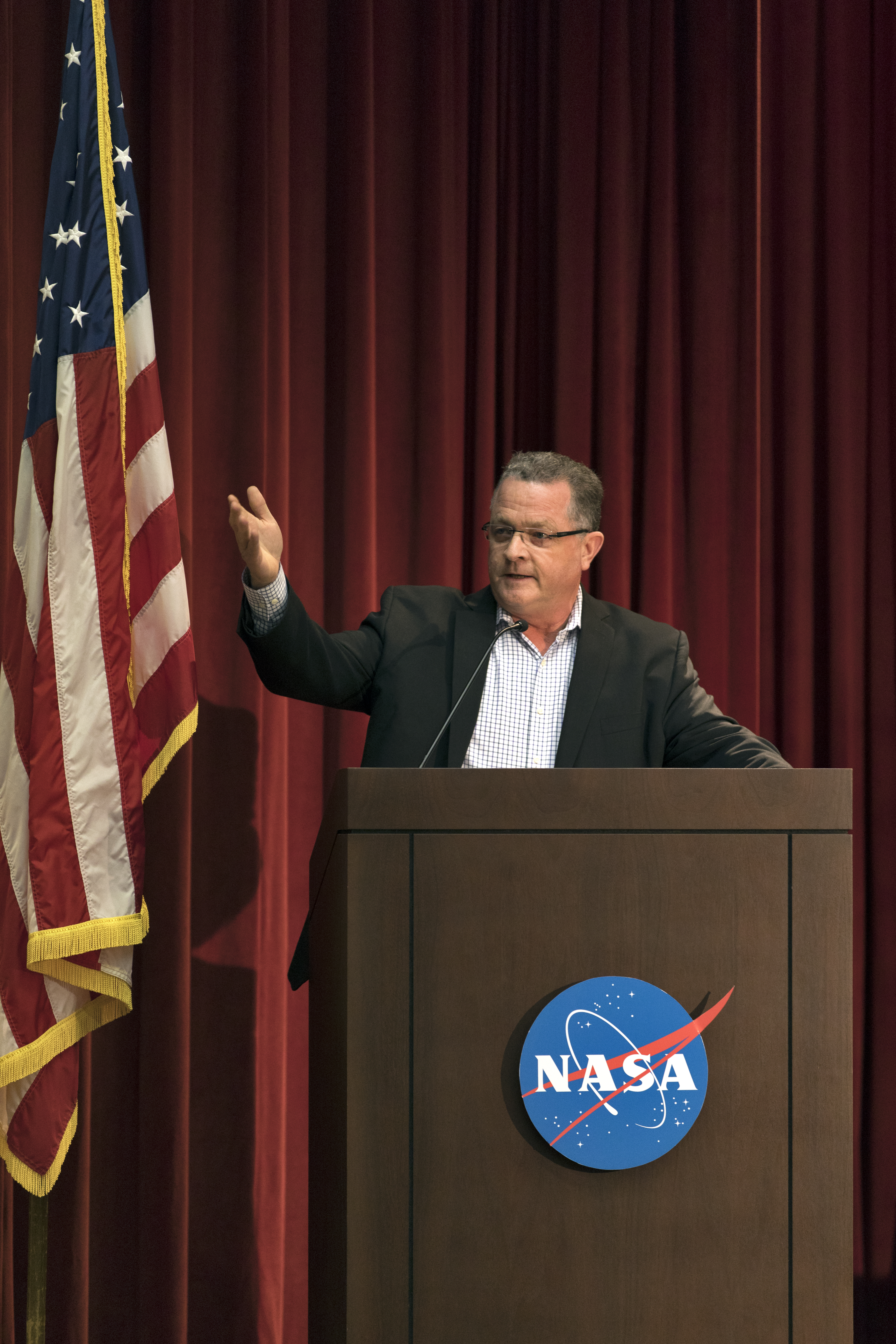 Dave King, former director of Marshall Space Flight Center in Huntsville, Alabama, and NASA Columbia Recovery director, gives the keynote speech during an Apollo, Challenger, Columbia Lessons Learned Program employee event at NASA's Kennedy Space Center in Florida. The theme of the presentation was "Columbia: Lessons and Legends of Recovery." King also participated in a panel discussion moderated by Kennedy Space Center Director Bob Cabana.