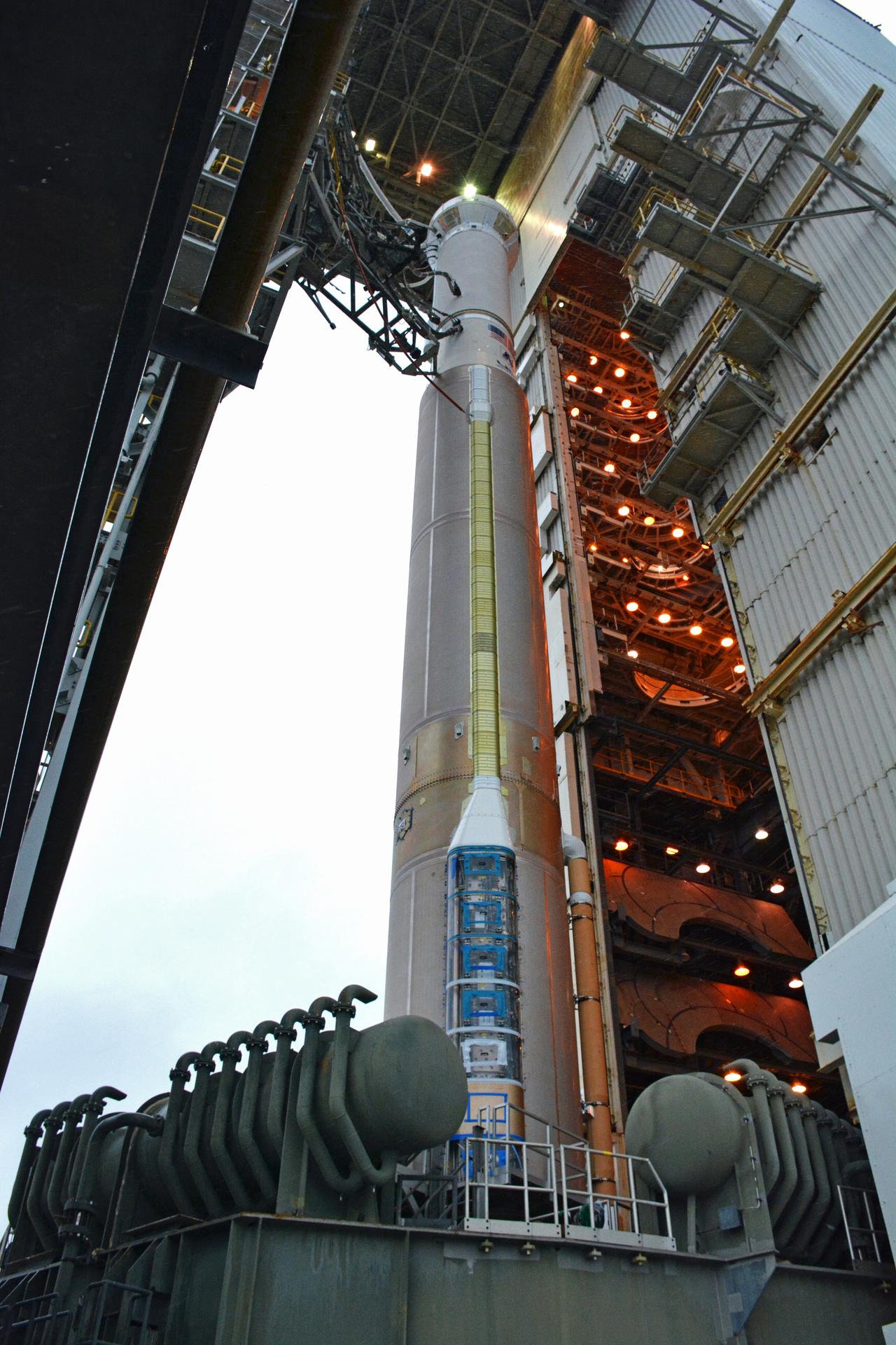 At Space Launch Complex 3 at Vandenberg Air Force Base in California, the gantry is rolled back on the United Launch Alliance (ULA) Atlas V to a Centaur upper stage aft stub adapter (ASA) and interstage adapter (ISA) for NASA's Interior Exploration using Seismic Investigations, Geodesy and Heat Transport, or InSight, spacecraft to land on Mars. The next step will be arrival of InSight encapsulated in its payload faring for mating atop the rocket. InSight is the first mission to explore the Red Planet's deep interior. InSight is scheduled for liftoff May 5, 2018. InSight will be the first mission to look deep beneath the Martian surface. It will study the planet's interior by measuring its heat output and listen for marsquakes. InSight will use the seismic waves generated by marsquakes to develop a map of the planet’s deep interior. The resulting insight into Mars’ formation will provide a better understanding of how other rocky planets, including Earth, were created. NASA’s Jet Propulsion Laboratory in Pasadena, California, manages the InSight mission for the agency’s Science Mission Directorate. InSight is part of NASA's Discovery Program, managed by its Marshall Space Flight Center in Huntsville, Alabama. The spacecraft, including cruise stage and lander, was built and tested by Lockheed Martin Space in Denver. Several European partners, including France's space agency, the Centre National d'Étude Spatiales, and the German Aerospace Center, are supporting the mission. United Launch Alliance of Centennial, Colorado, is providing the Atlas V launch service. NASA’s Launch Services Program, based at its Kennedy Space Center in Florida, is responsible for launch management.