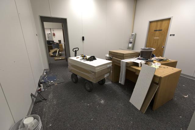 Modifications and upgrades are underway inside the Astronaut Crew Quarters in the Neil Armstrong Operations and Checkout Building at NASA's Kennedy Space Center in Florida. One of the support rooms is being prepped for upgrades, including new paint, carpeting and trim around the doors. The crew quarters are being prepared for the next generation of space explorers. The historic facility housed Apollo and space shuttle astronauts before and after their missions into space.