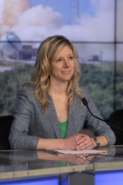In the Kennedy Space Center’s Press Site auditorium, NASA and industry leaders speak to members of the media during a prelaunch news conference for the SpaceX CRS-14 commercial resupply services mission to the International Space Station. Jessica Jensen, director, Dragon Mission Management, SpaceX, participates in the news conference. A Dragon spacecraft is scheduled to be launched from Space Launch Complex 40 at Cape Canaveral Air Force Station at 4:30 p.m. EST, on April 2, 2018. The SpaceX Falcon 9 rocket will lift off on the company's 14th Commercial Resupply Services mission to the space station.
