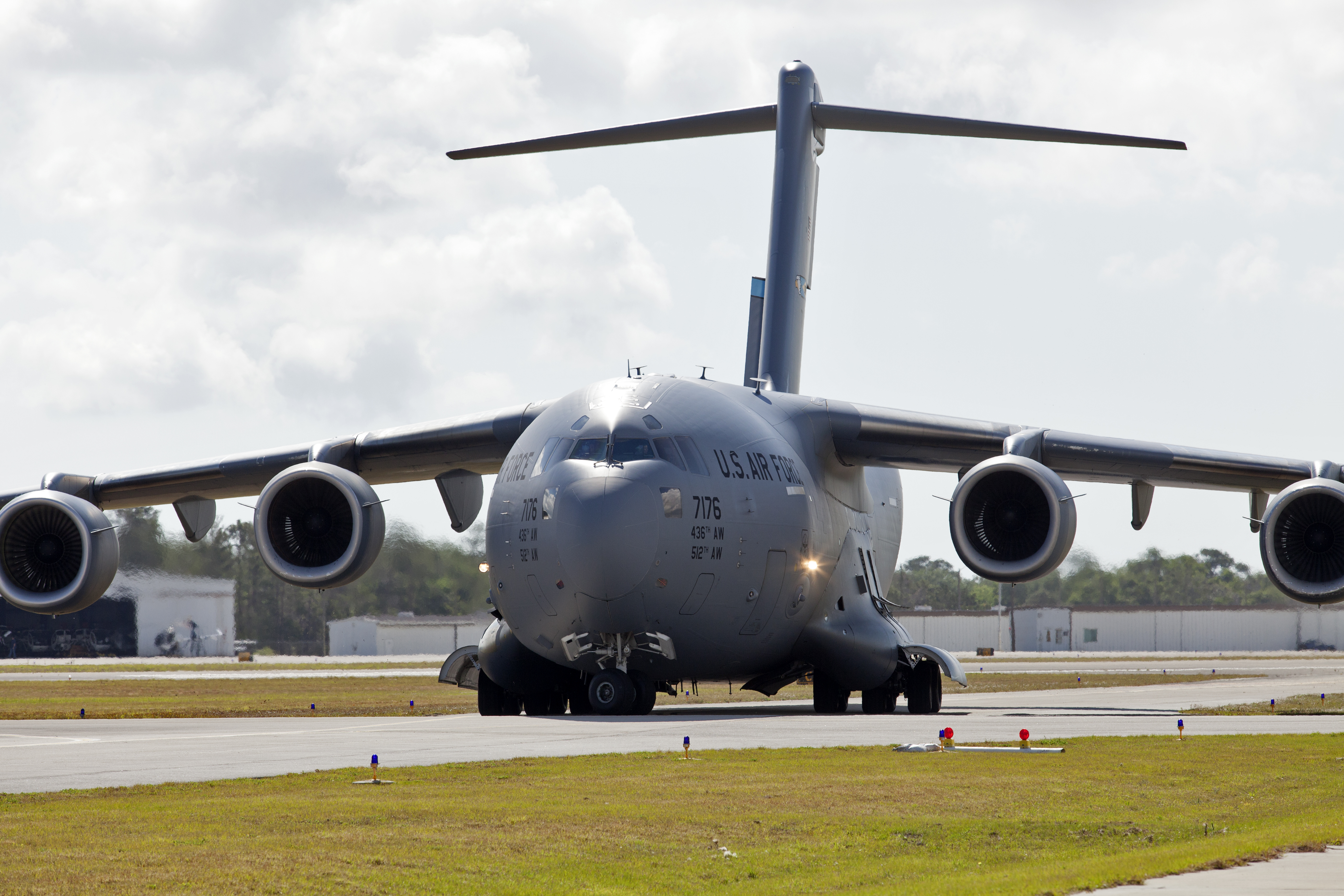 A U.S. Air Force C-5 transport aircraft arrives at Space Coast Regional Airport in Titusville, Florida, with NASA's Parker Solar Probe spacecraft aboard. The spacecraft will be offloaded and transported to the Astrotech processing facility near the agency's Kennedy Space Center. The Parker Solar Probe will launch on a United Launch Alliance Delta IV Heavy rocket from Space Launch Complex 37 at Cape Canaveral Air Force Station in Florida in July 2018. The mission will perform the closest-ever observations of a star when it travels through the Sun's atmosphere, called the corona. The probe will rely on measurements and imaging to revolutionize our understanding of the corona and the Sun-Earth connection.