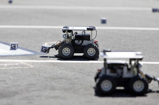 In the Swarmathon competition at the Kennedy Space Center Visitor Complex, students were asked to develop computer code for the small robots, programming them to look for "resources" in the form of AprilTag cubes, similar to barcodes. Teams developed search algorithms for the Swarmies to operate autonomously, communicating and interacting as a collective swarm similar to ants foraging for food. In the spaceport's third annual Swarmathon, 23 teams represented 24 minority serving universities and community colleges were invited to develop software code to operate these innovative robots known as "Swarmies" to help find resources when astronauts explore distant locations, such as the Moon or Mars.