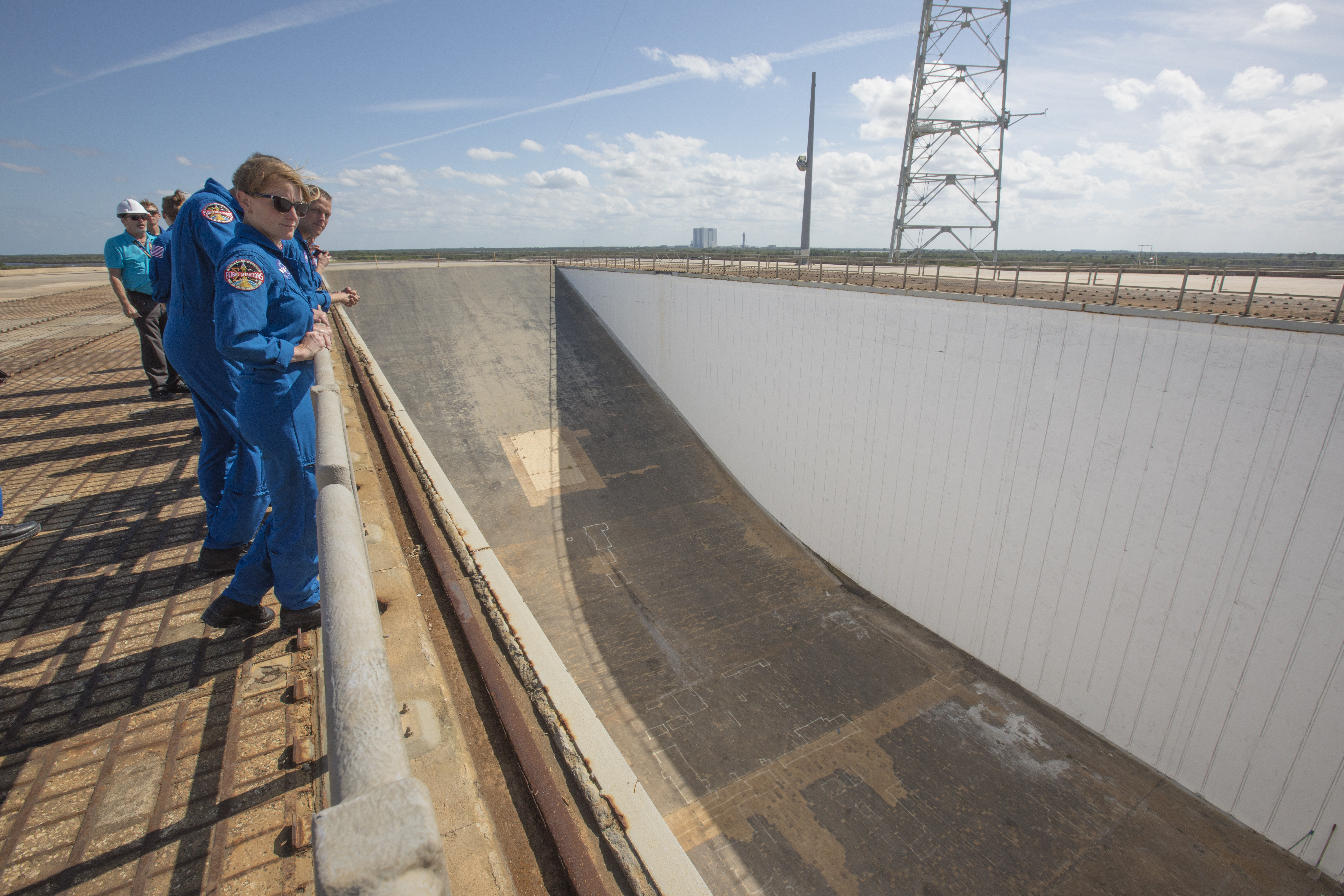 Members of the 2017 class of astronaut candidates view the flame trench at Launch Pad 39B during a familiarization tour of facilities at NASA's Kennedy Space Center in Florida. The candidates toured center facilities, including the Vehicle Assembly Building, Launch Control Center, Neil Armstrong Operations and Checkout Building high bay and the Space Station Processing Facility. They also toured Boeing's Commercial Crew and Cargo Facility, United Launch Alliance's Space Launch Complex 41 at Cape Canaveral Air Force Station, and SpaceX's Launch Pad 39A at Kennedy. The candidates will spend about two years getting to know the space station systems and learning how to spacewalk, speak Russian, control the International Space Station's robotic arm and fly T-38s, before they're eligible to be assigned to a mission.