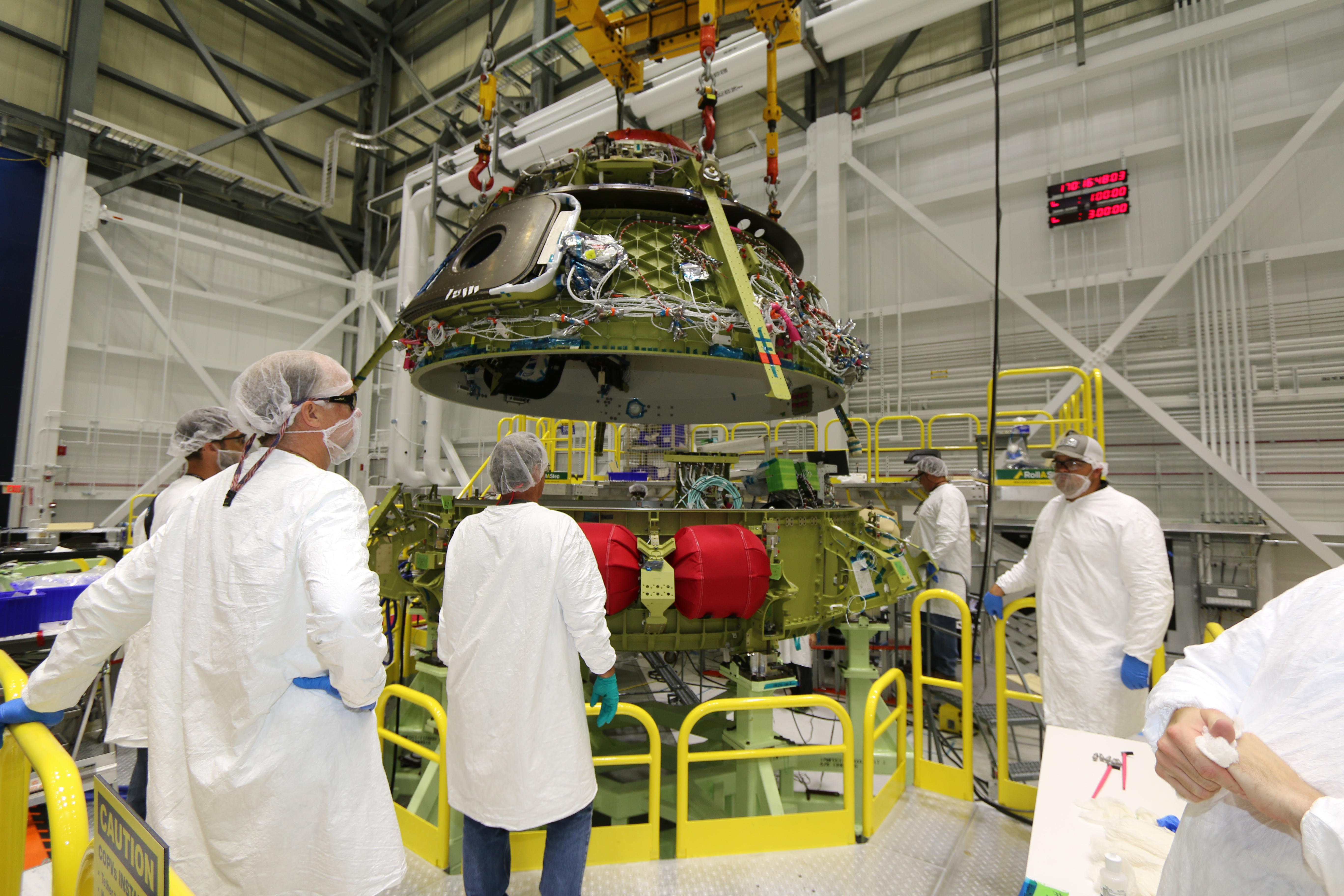 The upper and lower domes of the Boeing CST-100 Starliner Spacecraft 2 Crew Flight Test Vehicle were mated June 19, 2018, inside the Commercial Crew and Cargo Processing Facility (C3PF) at Kennedy Space Center in Florida. The Starliner will launch astronauts on a United Launch Alliance Atlas V rocket to the International Space Station as part of NASA’s Commercial Crew Program.