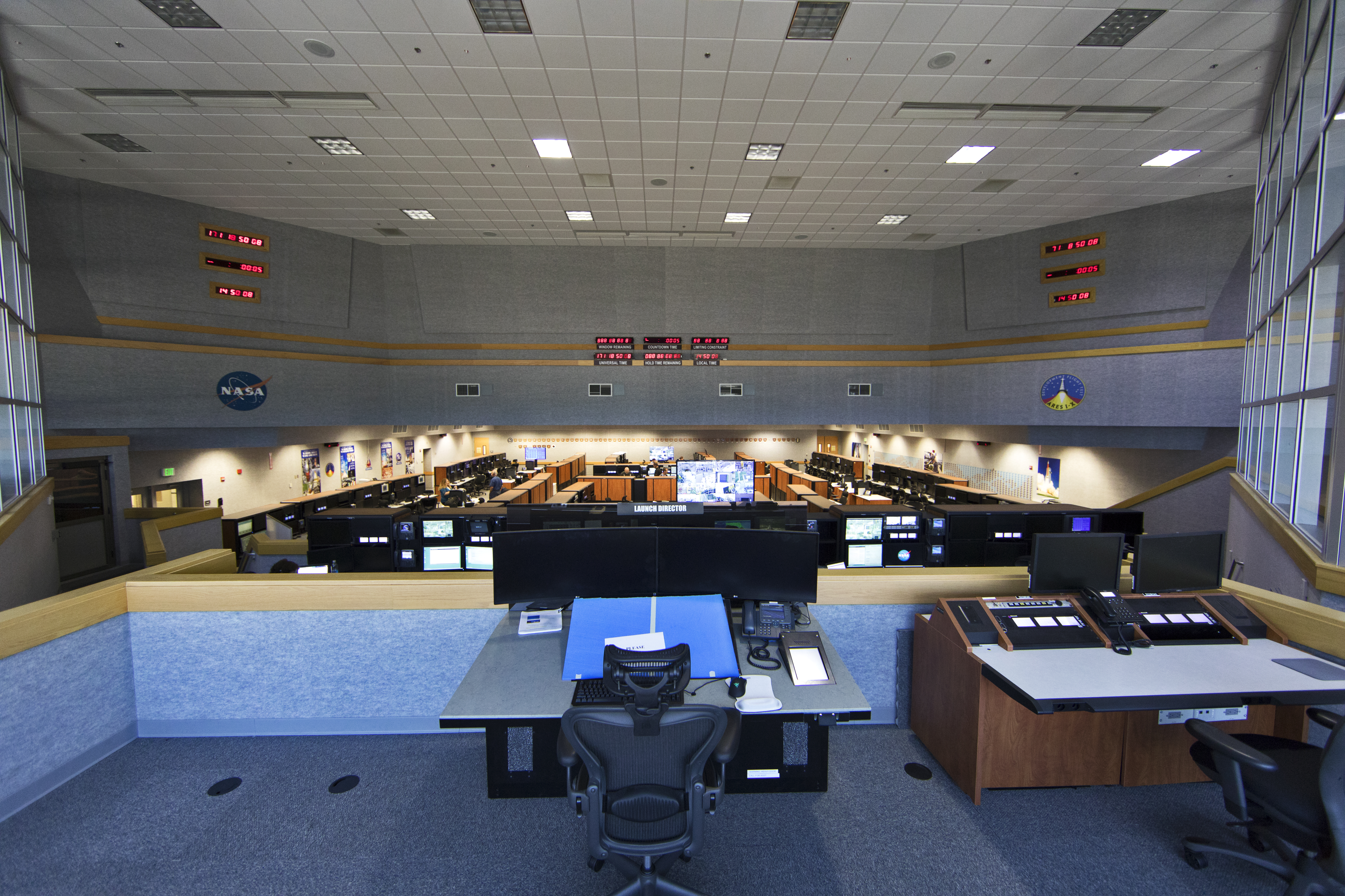 A view of Firing Room 1 in the Launch Control Center (LCC) at NASA's Kennedy Space Center in Florida. The Apollo and shuttle-era firing rooms in the LCC have been upgraded. The upper deck includes a work station in development for the EM-1 launch director. Exploration Ground Systems upgraded Firing Room 1 to support the launch of NASA's Space Launch System rocket and Orion spacecraft on Exploration Mission-1 and deep space missions.