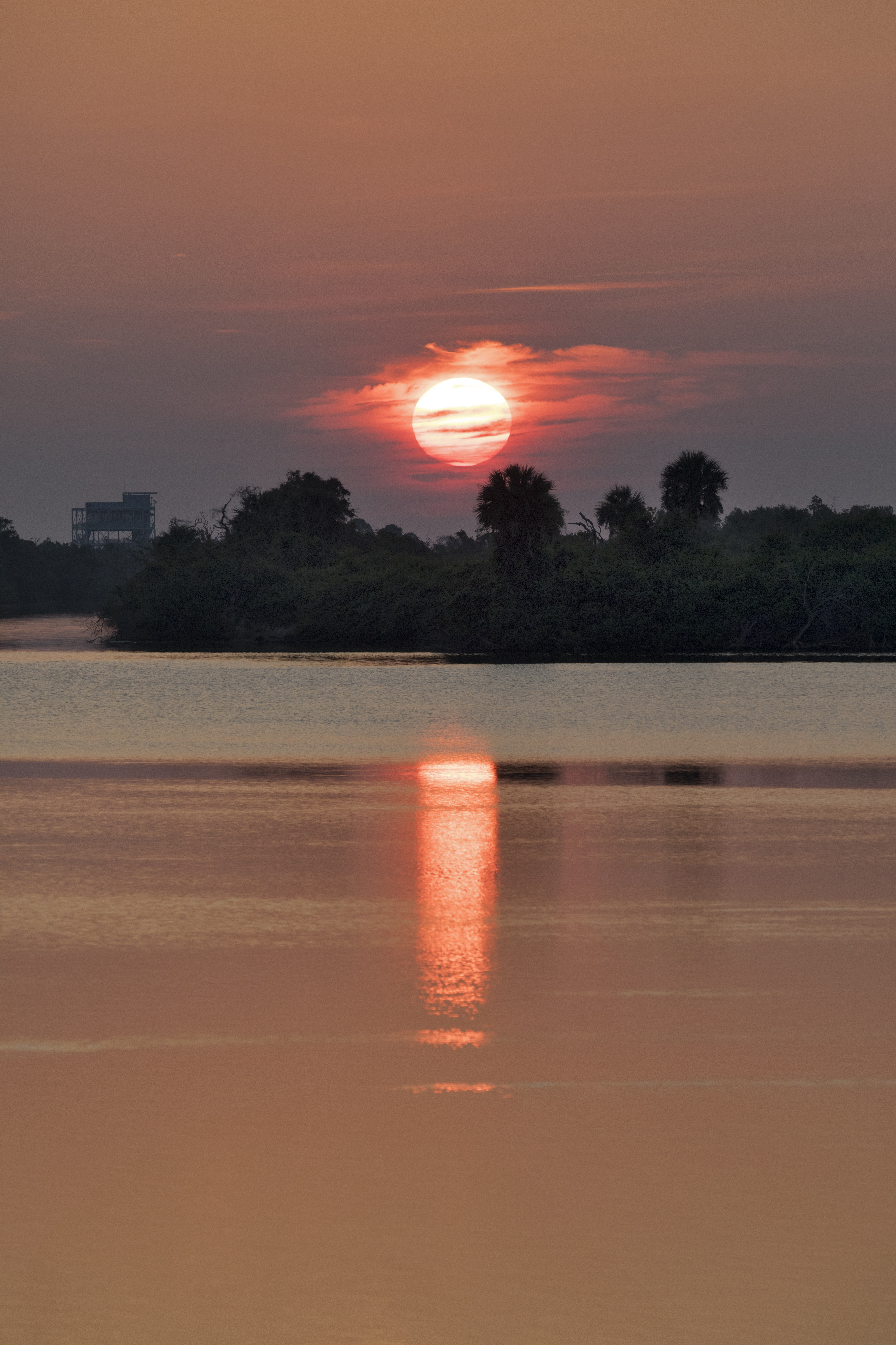 A sunrise at NASA's Kennedy Space Center in Florida, on June 21, from the Saturn V center at nearby Kennedy Space Center Visitor Complex.