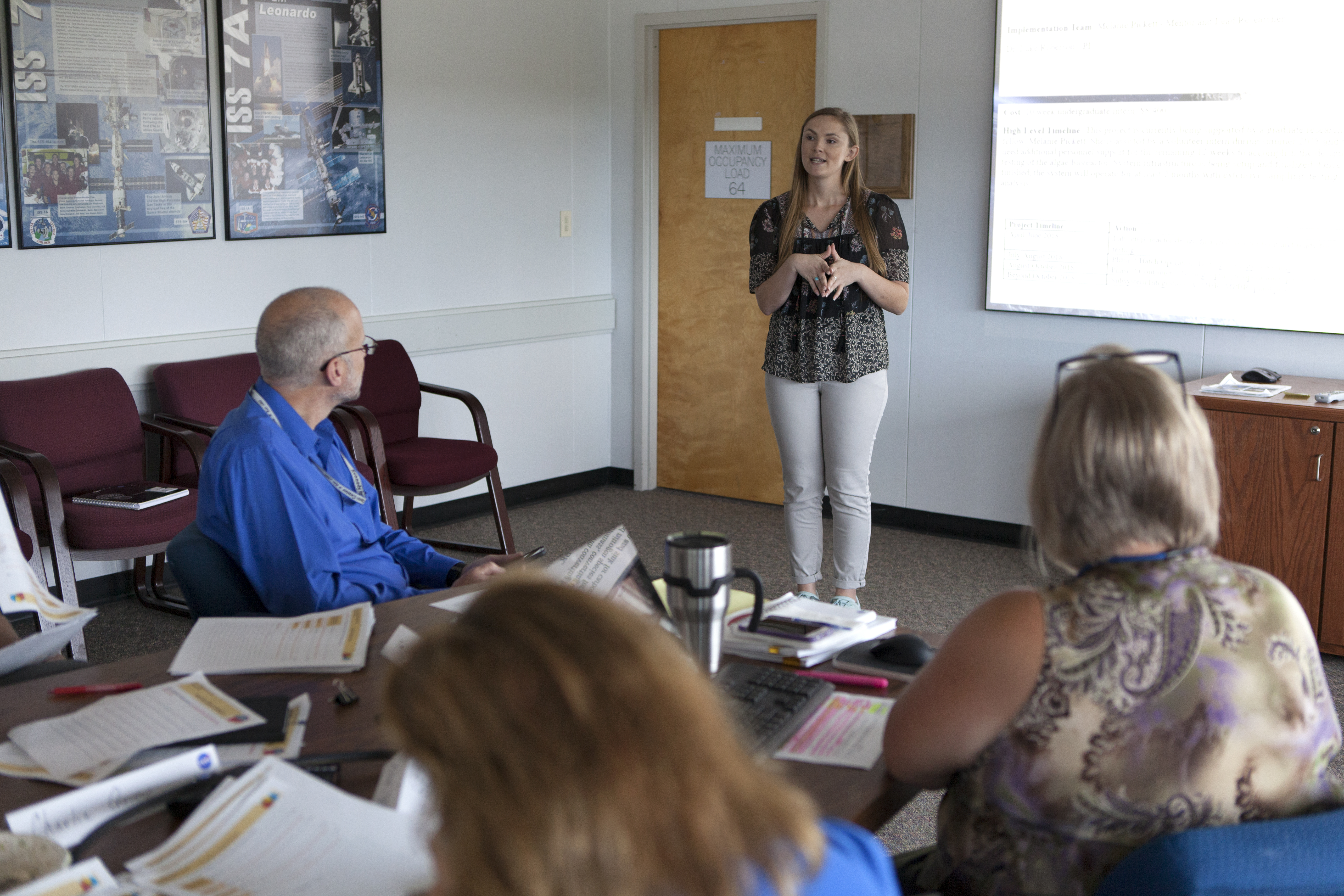 Melanie Pickett, from the Exploration Research and Technology Programs directorate, presents her proposal during the “Innovation Without Boundaries” event held in the Space Station Processing Facility at Kennedy Space Center in Florida on Thursday, Aug. 2. There were 39 proposals featuring a wide range of innovative ideas as part of the Chief Technologist Innovation Call. Presenters had two minutes to highlight their idea, followed by a three-minute question-and-answer period. The judging panel included senior staff, contractors and representatives throughout Kennedy.
