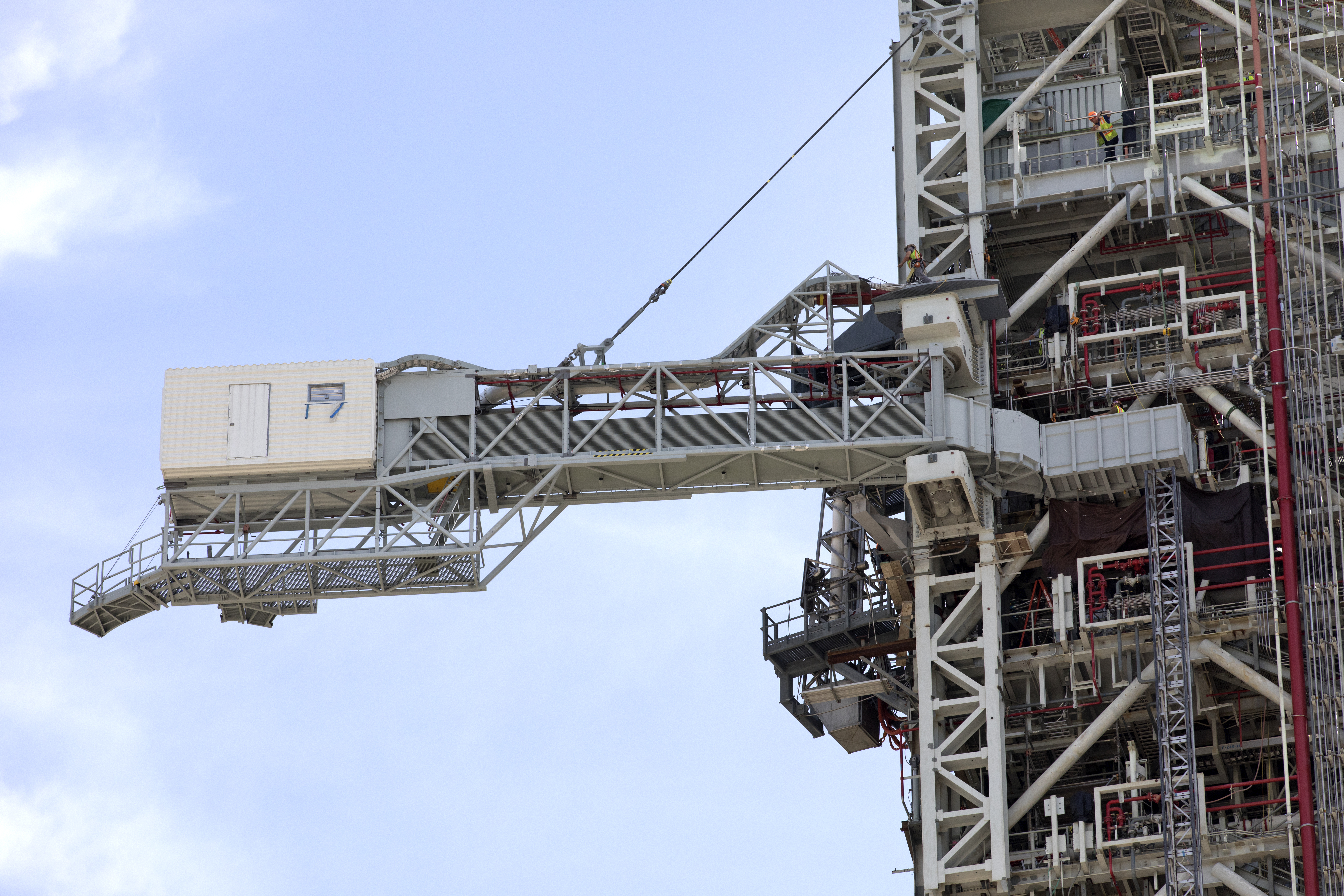 Technicians and engineers with Exploration Ground Systems at the NASA's Kennedy Space Center in Florida recently tested the Crew Access Arm (CAA) that was added on the mobile launcher being prepared to support the agency’s Orion spacecraft and Space Launch System rocket. The crucial test confirmed the functionality and integrity of the CAA. The CAA is designed to rotate from its retracted position and line up with Orion's crew hatch. The arm will provide entry and emergency egress for astronauts and technicians into and out of the Orion spacecraft.