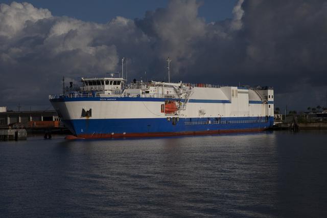 The United Launch Alliance (ULA) Mariner ship arrives at Port Canaveral in Florida carrying a two-engine Centaur upper stage for the upcoming uncrewed Orbital Flight Test of a Boeing CST-100 Starliner spacecraft. As part of NASA's Commercial Crew Program (CCP), the Starliner is part of the next generation of American spacecraft that will launch astronauts to the International Space Station. Starliner will launch early next year atop a ULA Atlas V rocket with the Centaur upper stage from Space Launch Complex 41 at Cape Canaveral Air Force Statin. NASA’s Commercial Crew Program will return human spaceflight launches to U.S. soil, providing safe, reliable and cost-effective access to low-Earth orbit on systems that meet our safety and mission requirements.