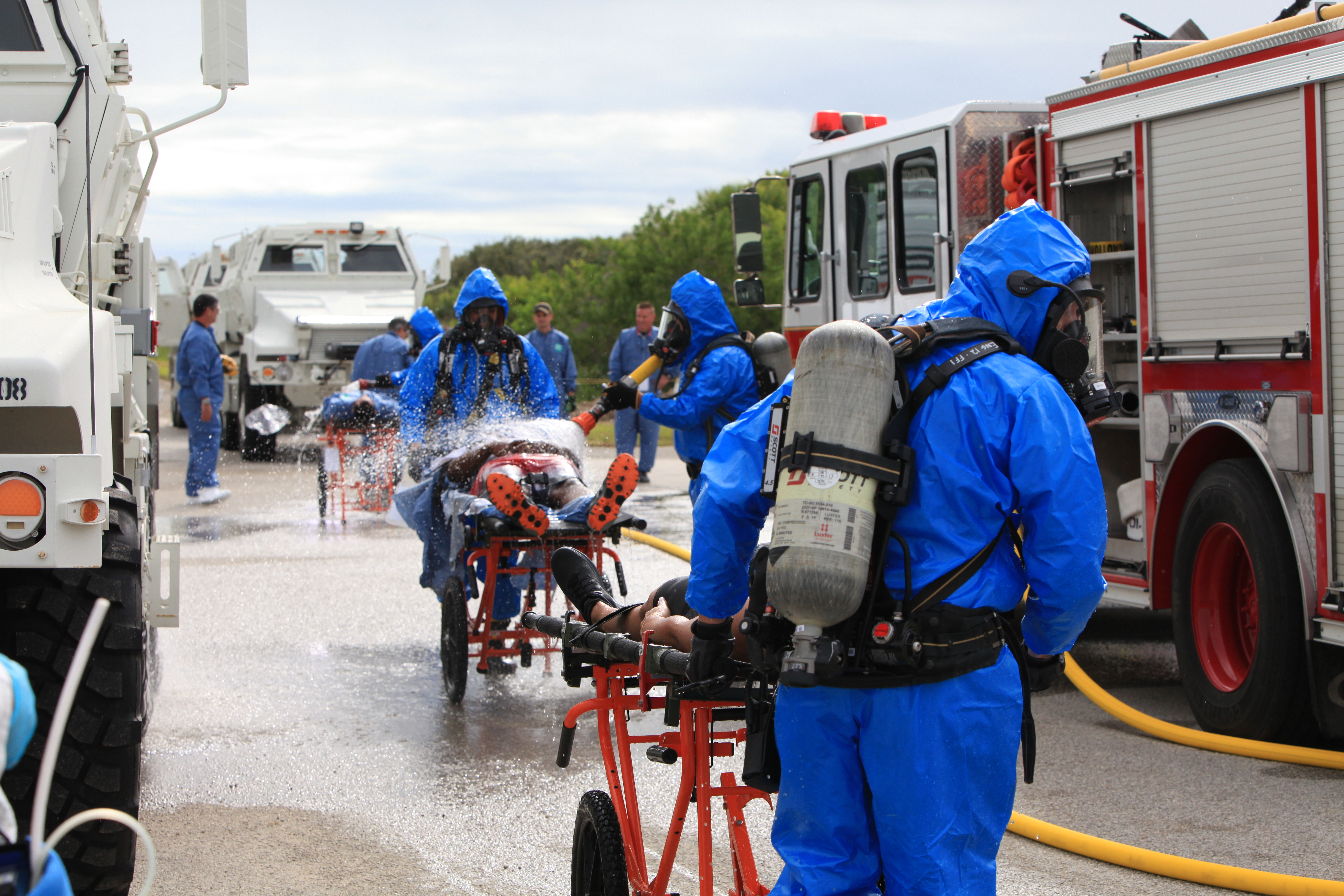 Teams from NASA, the Department of Defense Human Space Flight Support and SpaceX conduct a joint medical triage and medical evacuation (medevac) training exercise at NASA’s Kennedy Space Center in Florida. It was the second of two emergency medical services simulations performed before commercial crew flight tests, which are scheduled for 2019. As NASA’s Commercial Crew Program prepares to begin launching astronauts once again from American soil, teams are sharpening their launch day operations procedures, including responses during the unlikely event of an emergency.