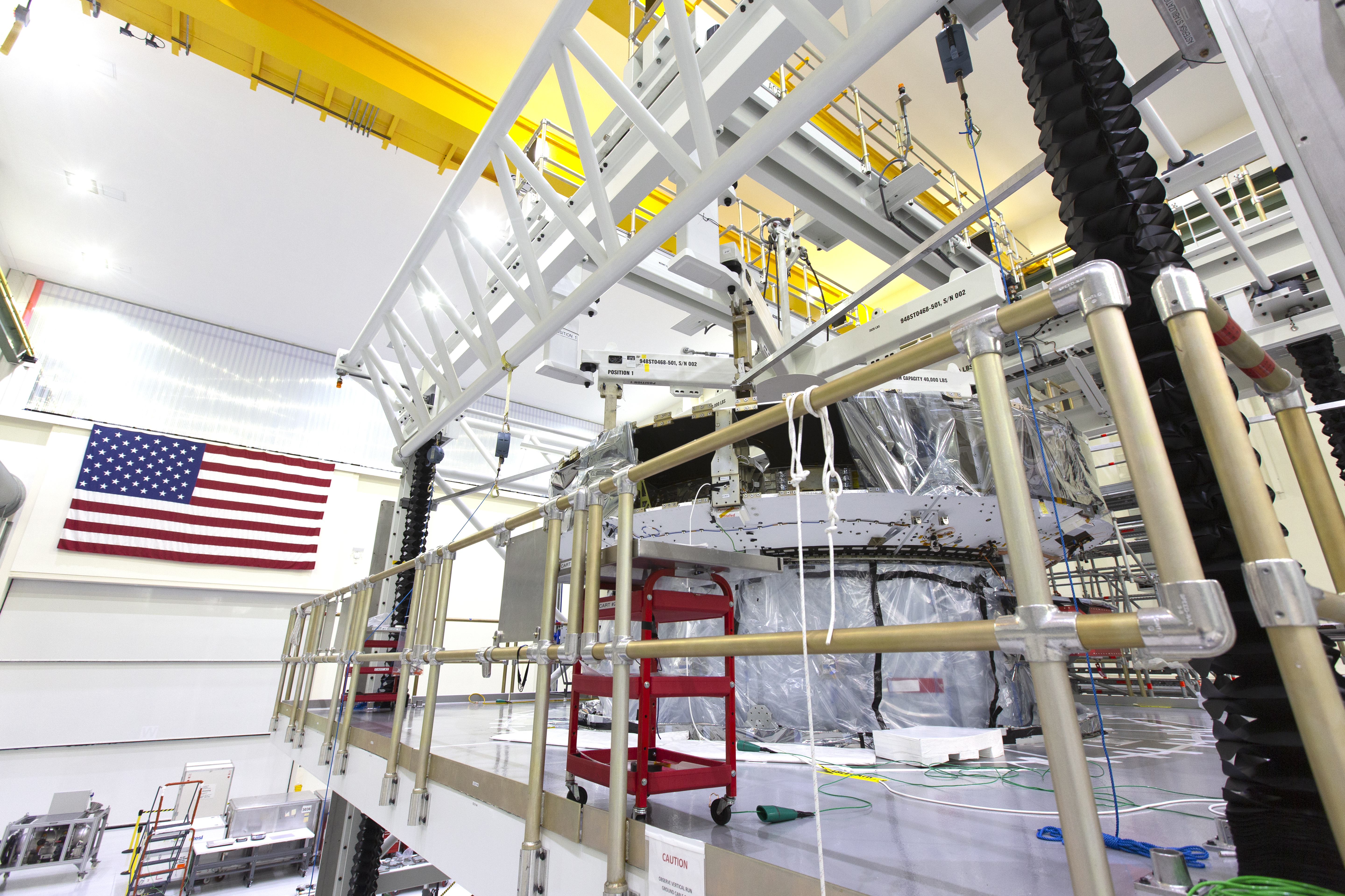 Inside the high bay of the Neil Armstrong Operations and Checkout Building at NASA's Kennedy Space Center in Florida, Orion's crew module adapter is mated to the European Service Module on Nov. 26, 2018. For the first time, NASA will use a European-built system as a critical element to power an American spacecraft, extending the international cooperation of the International Space Station into deep space. The European Service Module is a unique collaboration across space agencies and industry, including the European Space Agency's prime contractor, Airbus, and 10 European countries. The completion of service module work in Europe and shipment to Kennedy signifies a major milestone toward NASA's human deep space exploration missions to the Moon and beyond.
