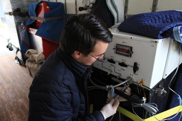 Kevin Mark, Orbiting Carbon Observatory 3 (OCO-3) purge engineer with NASA’s Jet Propulsion Laboratory, secures a separate fixture of OCO-3, stored apart from its payload container, on the truck transporting it from the Space Station Processing Facility high bay at the agency’s Kennedy Space Center in Florida to the SpaceX facility on March 18, 2019. The OCO-3 payload will be stowed in the trunk of SpaceX’s Dragon spacecraft, where it will launch aboard a Falcon 9 rocket on the company’s 17th Commercial Resupply Services mission to the International Space Station. Launch is scheduled for April 25, 2019, from Launch Complex 40 at Cape Canaveral Air Force Station. Once the payload reaches the station, it will be removed from Dragon and robotically installed on the exterior of the orbiting laboratory’s Japanese Experiment Module Exposed Facility Unit, where it will measure and map carbon dioxide from space to provide further understanding of the relationship between carbon and climate.
