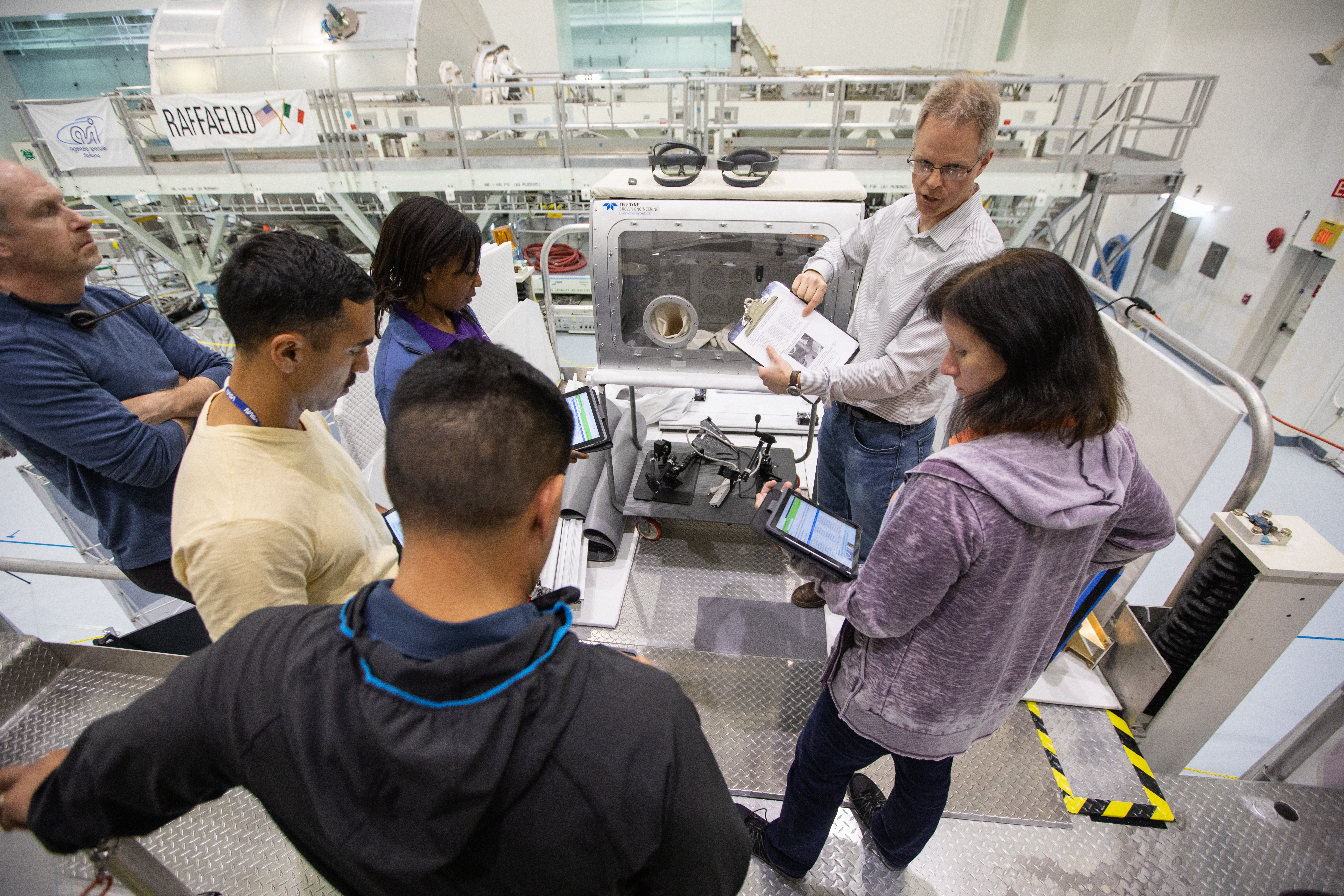 NASA began evaluating five habitat prototypes developed through NASA’s Next Space Exploration for Technologies Partnerships, or NextSTEP, to help engineers refine requirements for the design of an American-made deep space habitat for the Gateway. Lockheed Martin turned over its prototype to NASA, and testing began with crew on March 25, 2019, at Kennedy Space Center in Florida. Pictured inside the Space Station Processing Facility on March 26, 2019, from far left is astronaut Frank Rubio. In front of him, are Raja Chari and Stephanie Wilson. At right is astronaut Shannon Walker. Astronauts are participating in the evaluations to provide their perspectives as those who may one day live aboard the lunar outpost, which would be located about 250,000 miles from Earth. Ground prototypes developed by Bigelow Aerospace, Boeing, Northrop Grumman, and Sierra Nevada Corporation will be tested in the future at various facilities across the country. A sixth company, NanoRacks, plans to develop a prototype as well.