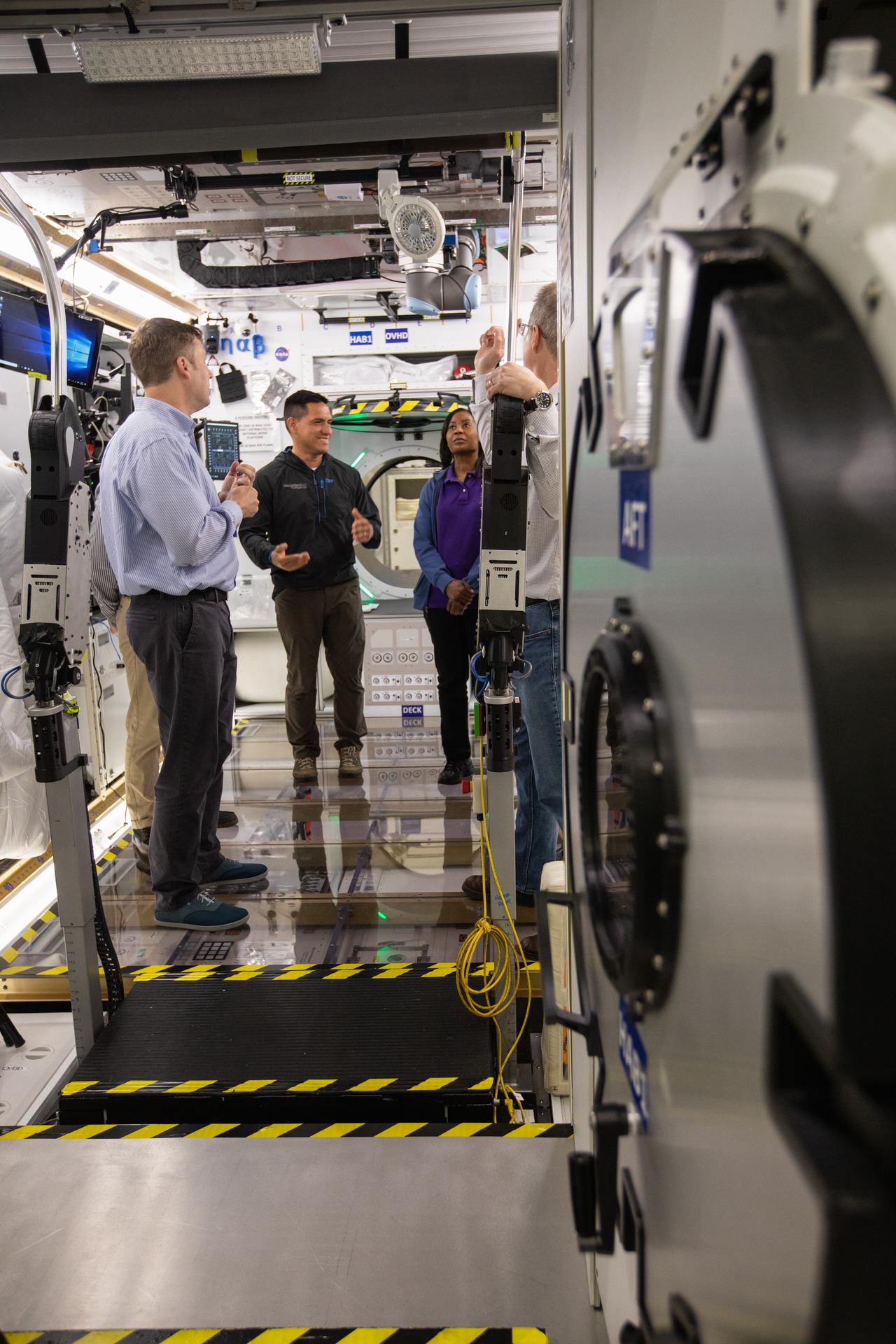 NASA began evaluating five habitat prototypes developed through NASA’s Next Space Exploration for Technologies Partnerships, or NextSTEP, to help engineers refine requirements for the design of an American-made deep space habitat for the Gateway. Lockheed Martin turned over its prototype to NASA, and testing began with crew on March 25, 2019, at Kennedy Space Center in Florida. Pictured inside the habitat prototype on March 26, 2019, second from left is astronaut Frank Rubio. Next to him is astronaut Stephanie Wilson. Astronauts are participating in the evaluations to provide their perspectives as those who may one day live aboard the lunar outpost, which would be located about 250,000 miles from Earth. Ground prototypes developed by Bigelow Aerospace, Boeing, Northrop Grumman, and Sierra Nevada Corporation will be tested in the future at various facilities across the country. A sixth company, NanoRacks, plans to develop a prototype as well.