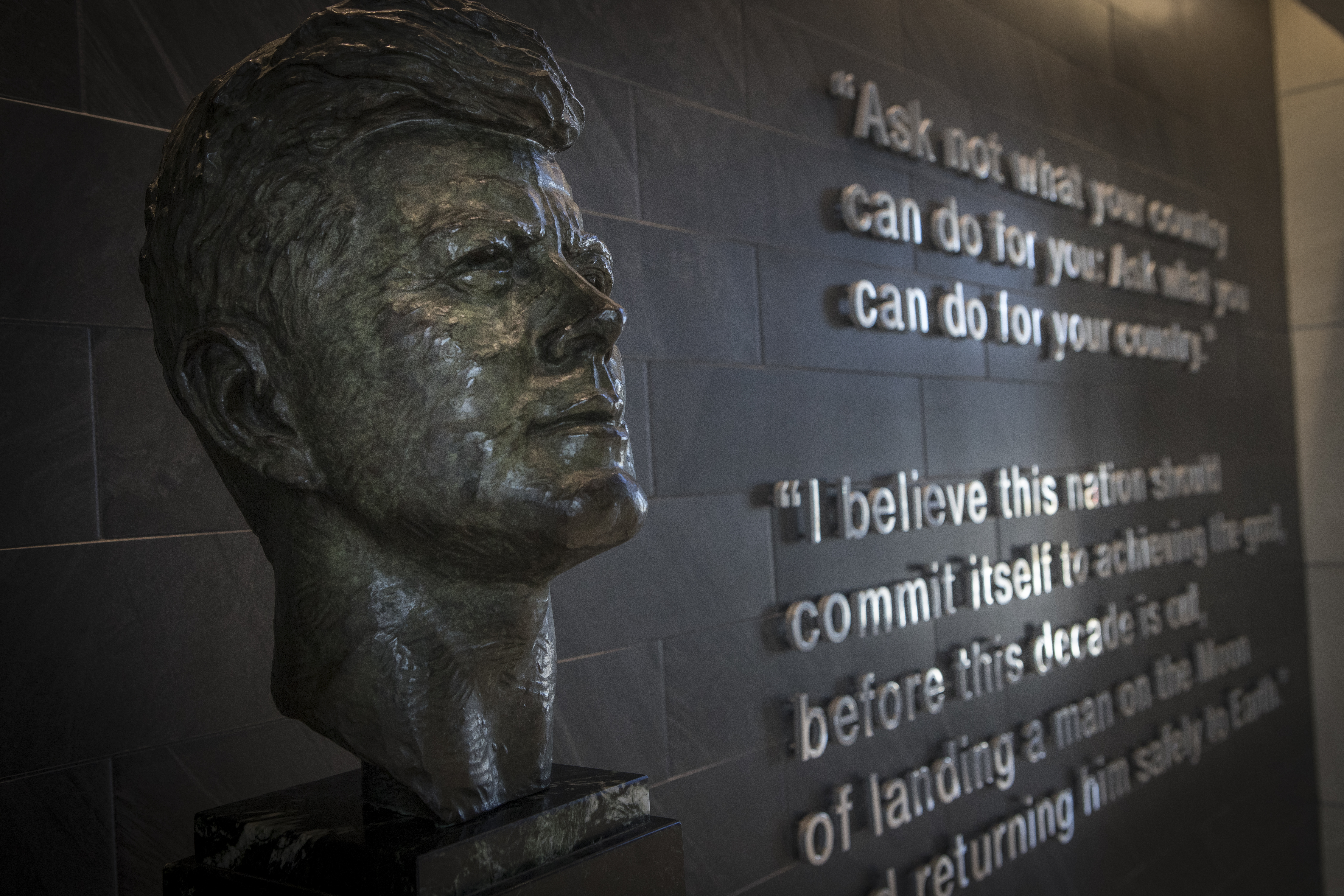 A view of some of the design elements in the lobby of the new headquarters building on April 3, 2019, at NASA’s Kennedy Space Center in Florida. The newly constructed facility anchors the multi-user spaceport’s Central Campus. More than 500 civil service and contractor employees will be based in the 200,000-square-foot building. The facility earned the U.S. Green Building Council’s Leadership in Energy and Environmental Design (LEED) Gold designation. Features include LED lighting throughout, along with occupancy sensors to turn off unneeded lights; windows, screens and shades designed to maximize natural light; chilled beam HVAC technology reducing the need for ductwork, and more.