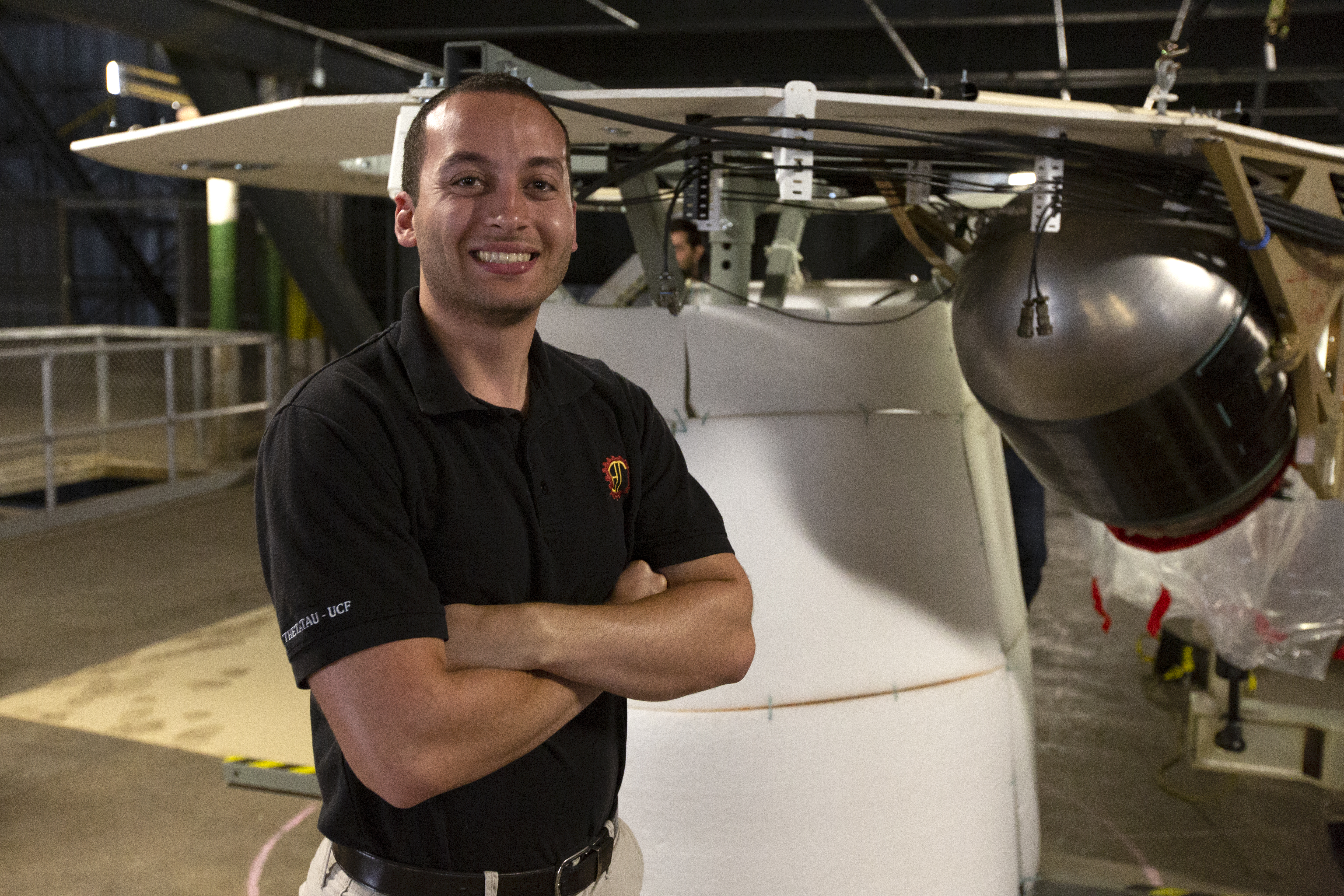 Christopher Di Taranto, a member of the mechanical structures engineering team on the Jacobs Test and Operations Contract, stands in front of an Interim Cryogenic Propulsion Stage (ICPS) mockup during the Space Launch System avionics handling tool demonstration inside Kennedy Space Center’s Vehicle Assembly Building on April 4, 2019. The demonstration showed that avionics boxes could be successfully mounted into the SLS rocket’s upper stage safely, and with low risk of damaging a closely located hydrazine tank. Avionics boxes include the Inertial Navigation and Control Assembly and flight batteries. Di Taranto led a team to quickly resolve a non-conformance issue with the tool.