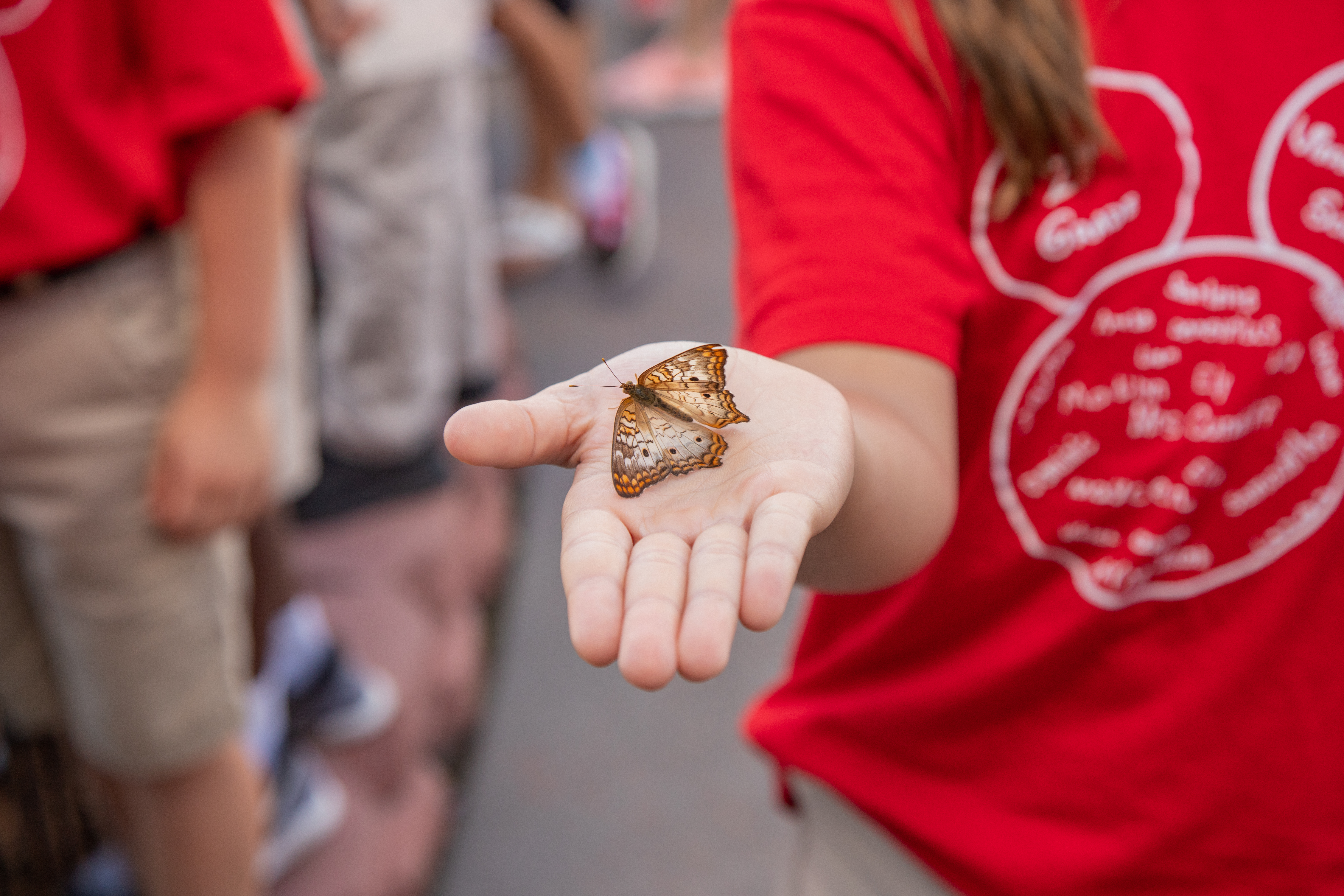 A butterfly sits in the palm of a visitor’s hand at the Kennedy Space Center Visitor Complex in Florida. Kennedy kicked of its annual Earth Day celebrations with a sustainability expo at the visitor complex on April 11, 2019, where butterflies were released throughout the day. Approximately 40 exhibitors from across the nation assembled to provide information ranging from energy-saving solutions to wildlife and natural conservation.
