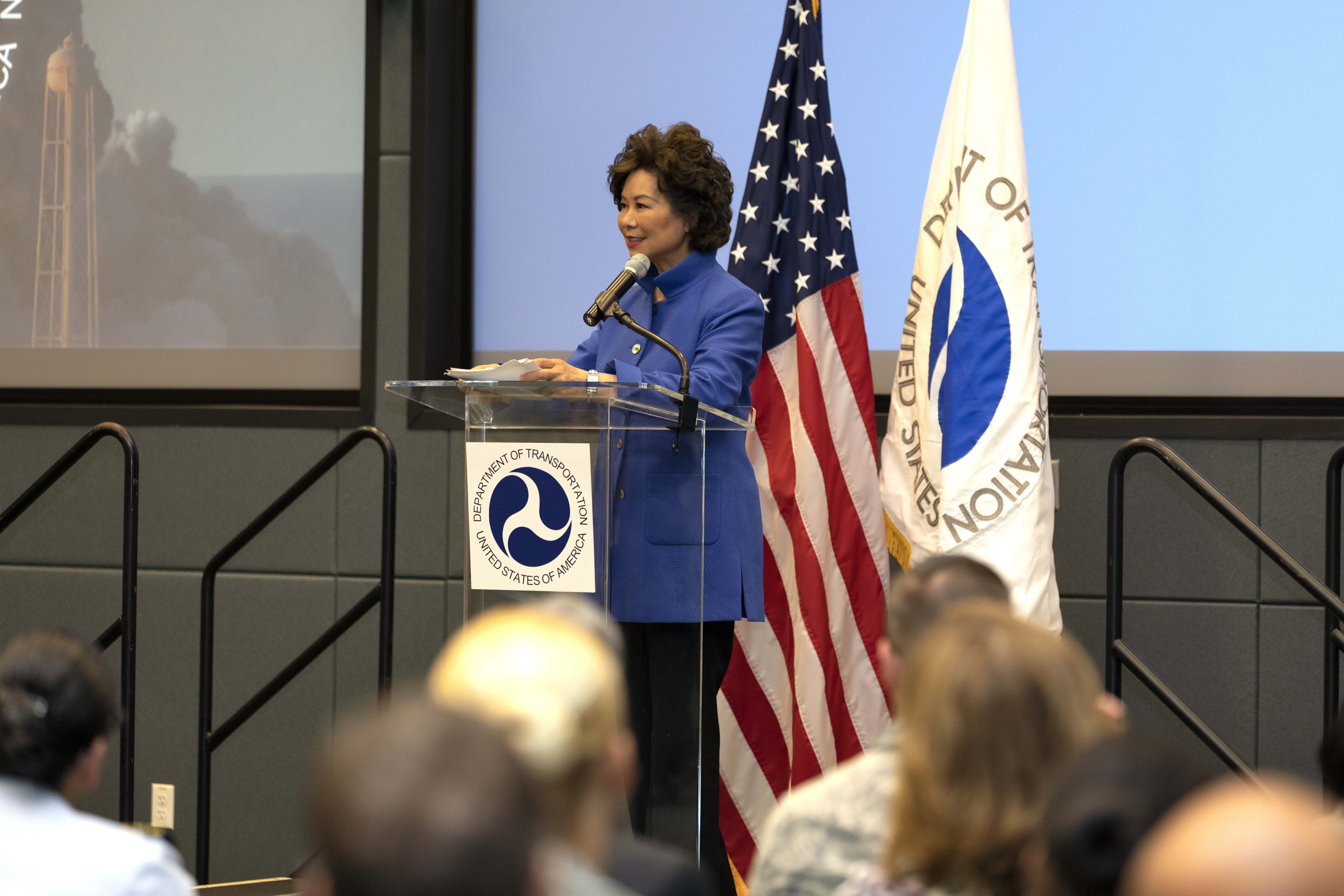 Secretary Elaine L. Chao, of the U.S. Department of Transportation (DOT), visits NASA’s Kennedy Space Center in Florida on April 24, 2019. She spoke to Kennedy’s leadership in the Operations and Support Building II and discussed the DOT’s role in enabling commercial space.