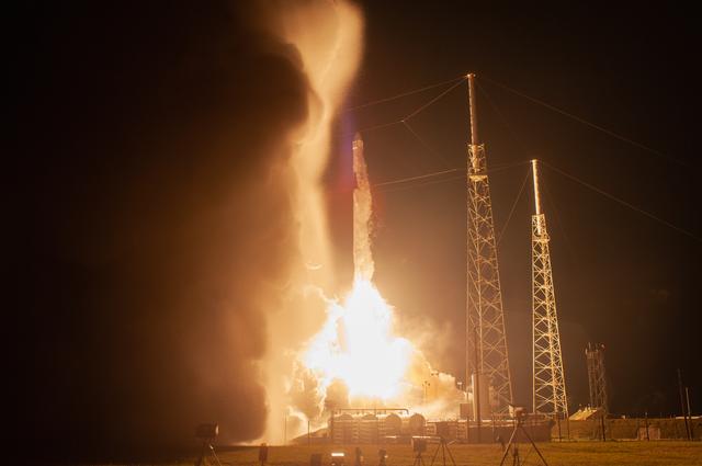 The SpaceX Falcon 9 rocket with the Dragon cargo module lifts off Space Launch Complex 40 on Cape Canaveral Air Force Station in Florida in the early morning May 4, 2019. Liftoff was at 2:48 a.m. EDT. This is SpaceX’s 17th Commercial Resupply Services (CRS-17) mission for NASA to the International Space Station. The Dragon cargo module will deliver about 5,500 pounds of science and research, crew supplies and vehicle hardware to the orbital laboratory and its crew.