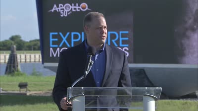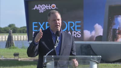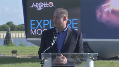 NASA Administrator Jim Bridenstine and Kennedy Space Center Director Bob Cabana address media for Apollo 11 50th Anniversary Media Day highlighting Artemis.