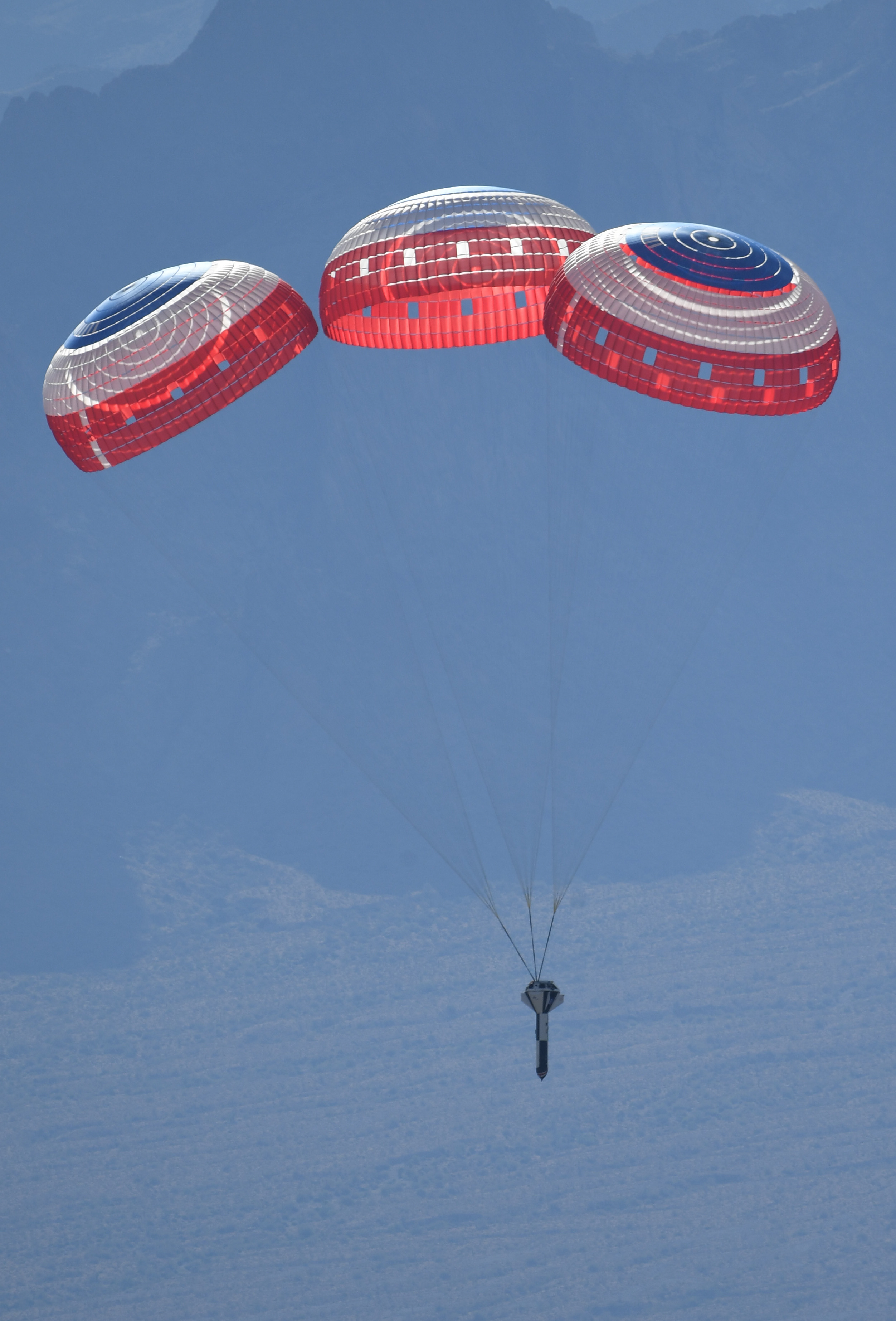 Boeing’s CST-100 Starliner’s parachute system is tested above the U.S. Army’s Yuma Proving Ground in Arizona on June 26, 2019. This “high Q” test involved dropping a dart-shaped device – functioning as a Starliner weight simulant – from a C-17 aircraft and intentionally inflating the parachutes at higher pressures than expected during missions. The data gathered from this parachute test will help validate the system is safe to carry astronauts to and from the International Space Station as part of NASA’s Commercial Crew Program. Boeing is targeting an uncrewed Orbital Flight Test to the space station this summer, followed by its Crew Flight Test. Starliner will launch atop a United Launch Alliance Atlas V rocket from Space Launch Complex 41 at Cape Canaveral Air Force Station in Florida.