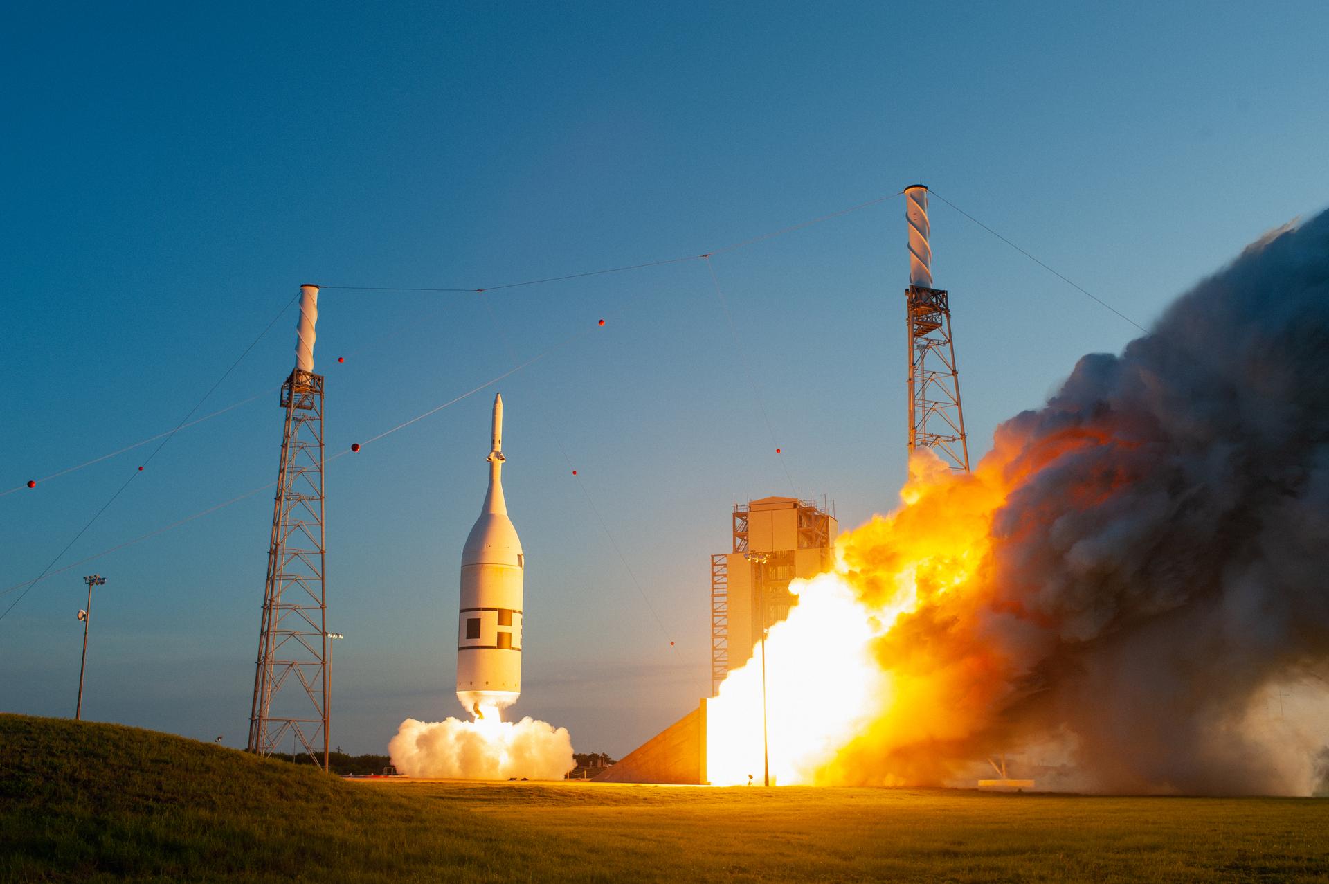 A fully functional Launch Abort System (LAS) with a test version of Orion attached, launches on NASA’s Ascent Abort-2 (AA-2) atop a Northrop Grumman provided booster on July 2, 2019, at 7 a.m. EDT, from Launch Pad 46 at Cape Canaveral Air Force Station in Florida. During AA-2, the booster will send the LAS and Orion to an altitude of 31,000 feet, traveling at Mach 1.15 (more than 1,000 mph). The LAS’ three motors will work together to pull the crew module away from the booster and prepare it for splashdown in the Atlantic Ocean. The flight test will prove that the abort system can pull crew to safety in the unlikely event of an emergency during ascent.